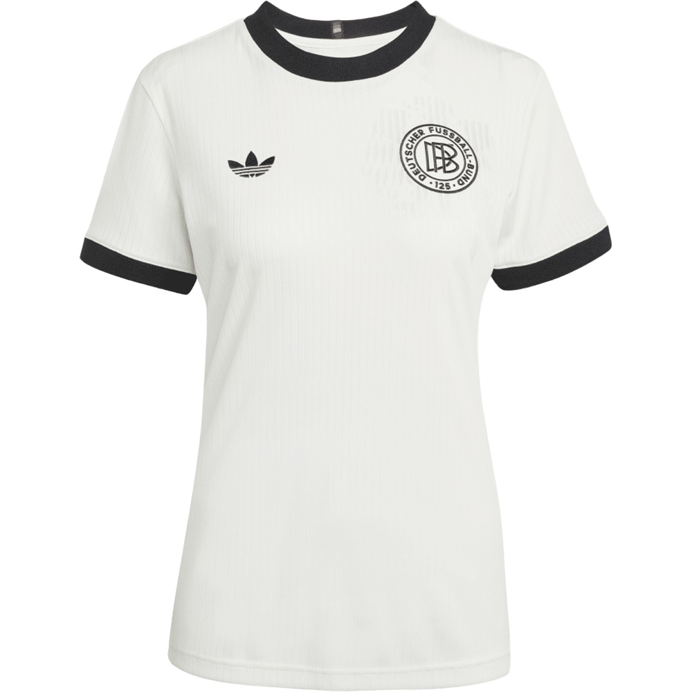 Feier mit uns das 125-jährige Jubiläum der deutschen Nationalelf und ihre lange Verbundenheit mit den 3-Streifen. Dieses Fußballtrikot ist von legendären adidas Trikots aus früheren Zeiten inspiriert und kommt mit dezenten Nadelstreifen und einem Ton in Ton gehaltenen Adler, der in das weiche Jacquard-Material eingearbeitet ist. Außerdem garantiert die feuchtigkeitsabsorbierende AEROREADY Technologie trockenen und bequemen Tragekomfort. Das Detail über dem Saum ist außerdem eine Anspielung auf die Gedenktafel, die an die Gründung des DFB in Leipzig erinnert.