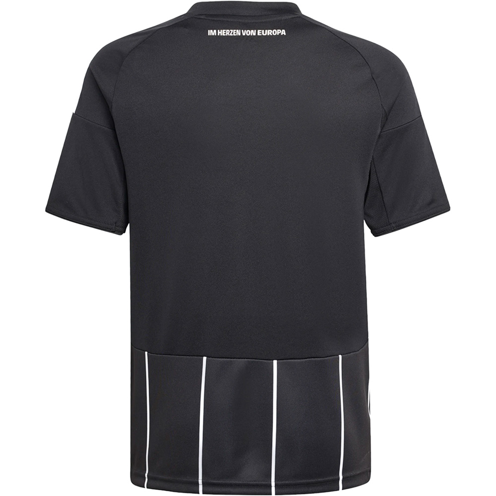 Das adidas Eintracht Frankfurt 4th Jersey für Kinder (KK6448) ist das offizielle Ausweichtrikot der Saison 2025/26 und vereint modernes Design mit funktionalem Komfort für junge Fans. Gefertigt aus 100?% recyceltem Polyester, bietet es ein leichtes und atmungsaktives Tragegefühl, während die AEROREADY-Technologie Feuchtigkeit effektiv ableitet und die Haut trocken hält. Das Trikot präsentiert sich in klassischem Schwarz mit weißen vertikalen Streifen und einem auffälligen Eintracht Frankfurt-Logo auf der Brust. Die reguläre Passform sorgt für Bewegungsfreiheit, und das Trikot kann mit dem Namen und der Nummer eines Spielers oder einem individuellen Namen personalisiert werden. Ob beim Stadionbesuch oder in der Freizeit – das KK6448 verbindet Teamstolz, Stil und Funktionalität für junge Fußballfans.