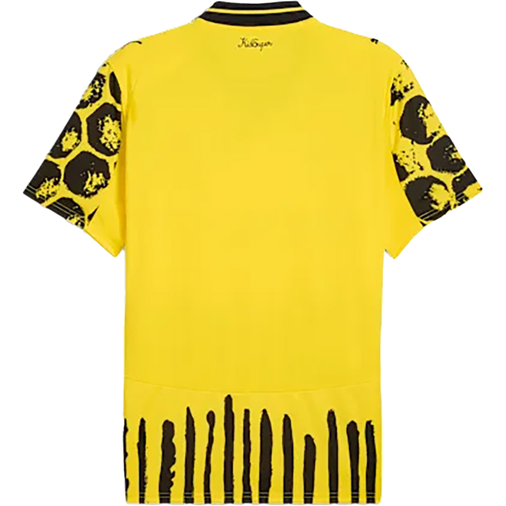 Gemalte hexagonale Zellen und dynamische Linien verleihen diesem BVB-Trikot, das von der geometrischen Form einer Honigwabe inspiriert ist, eine extra Portion Energie. Sorgt vom Ruhrpott bis zum Rodeo Drive für Aufsehen – dieses Trikot ist Teil der PUMA x KIDSUPER Kollektion, die mit handgezeichneten Grafiken, Aquarelltönen und Designs, die die Vereinskultur feiern, eine frische Perspektive auf das schöne Spiel bietet – neu interpretiert und bereit fürs Spiel.