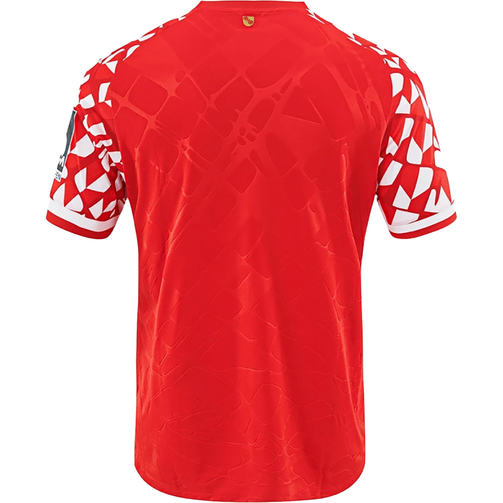 Das Mainz 05 Heimtrikot für die Saison 2025/26 vereint klassische Vereinsfarben mit modernem, dynamischem Design. Das markante Rot wird durch dezente Akzente ergänzt, die das Trikot frisch und sportlich wirken lassen. Hergestellt aus leichten, atmungsaktiven Materialien, sorgt es für ein angenehmes Tragegefühl und optimale Bewegungsfreiheit – ideal sowohl auf dem Spielfeld als auch in der Freizeit. Feine Details wie das gestickte Vereinslogo, subtile Designelemente und ein ergonomischer Schnitt unterstreichen die hochwertige Verarbeitung. Mit seiner perfekten Passform ist das Heimtrikot von Mainz 05 ein unverzichtbares Kleidungsstück für alle Fans, die ihre Verbundenheit zum Verein stilvoll zeigen möchten.