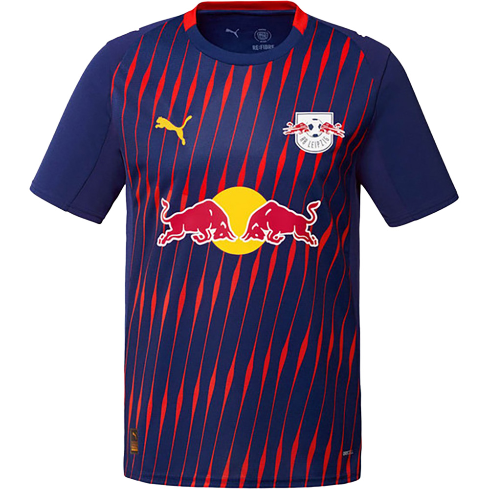 Schnell, furchtlos und unaufhaltsam – das Auswärtstrikot steht für den rasanten, hochintensiven Fußball von RB Leipzig. Das Design spiegelt die dynamische Spielweise des Vereins wider, der für sein aggressives Pressing und seine blitzschnellen Konter bekannt ist. Mit scharfen Kontrasten und stylishen Linien repräsentiert dieses Trikot den elektrisierenden Spielstil, mit dem Leipzig seinen bedeutenden Stellenwert im deutschen Fußball erreicht hat.