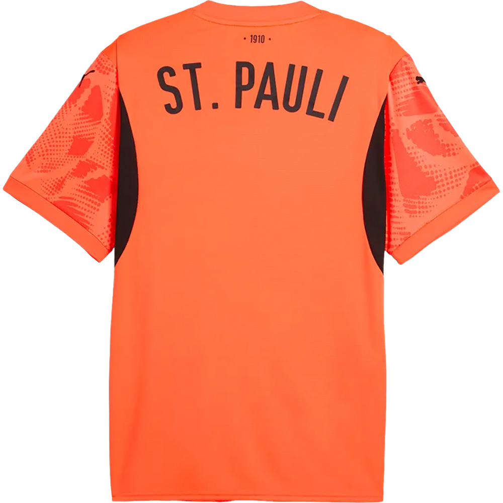 Die PUMA FC St. Pauli GK Jersey für die Saison 2024/25 kombiniert Funktionalität mit modernem Design und Nachhaltigkeit. Das Torwarttrikot in Neon Sun / Puma Black besteht zu 100?% aus recyceltem Polyester und ist mit der feuchtigkeitsableitenden dryCELL-Technologie ausgestattet, die für ein trockenes Tragegefühl sorgt. Strategisch platzierte Mesh-Einsätze bieten zusätzliche Belüftung, während das Jacquard-Material eine hohe Strapazierfähigkeit gewährleistet. Das offizielle Team-Branding auf der Brust, den Ärmeln und dem oberen Rücken zeigt die Verbundenheit zum FC St. Pauli. Dieses Trikot ist ideal für Torhüter und Fans, die sowohl auf dem Platz als auch abseits davon eine starke Leistung zeigen möchten.