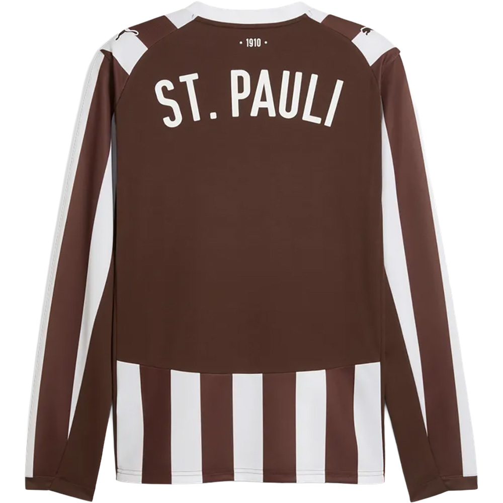 Das St. Pauli Heimtrikot 2025/2026 in Langarm-Variante vereint kultigen Vereinsstil mit modernem Komfort für Spieler und Fans gleichermaßen. Das charakteristische Braun wird durch dezente, dynamische Akzente ergänzt und sorgt für einen authentischen, markanten Look auf dem Platz. Hochwertiges, atmungsaktives Funktionsmaterial gewährleistet ein leichtes Tragegefühl und optimale Feuchtigkeitsregulierung – ideal für kühle Spieltage oder intensive Trainingseinheiten.Die ergonomische Passform bietet maximale Bewegungsfreiheit, während die langen Ärmel zusätzlichen Schutz und Wärme bieten. Offizielle Vereinsdetails wie das St. Pauli-Wappen und präzise gesetzte Akzente runden das Design ab und unterstreichen die Authentizität. Dank robuster Verarbeitung bleibt das Trikot auch bei häufigem Einsatz formstabil und langlebig.Ein perfektes Trikot für alle, die Stil, Tradition und Funktionalität in einem Stück vereint sehen wollen – authentisch, sportlich und mit echtem Kult-Charakter.