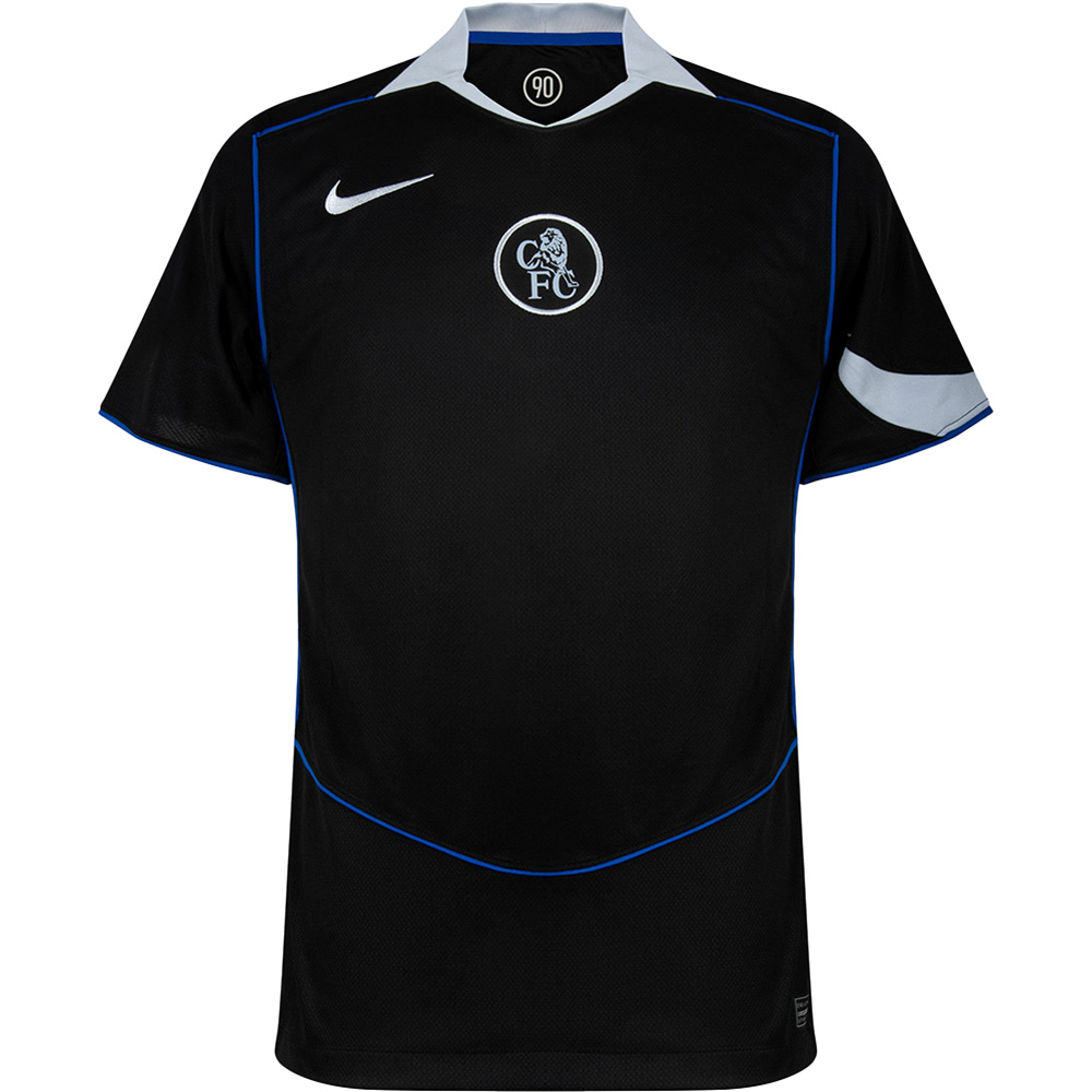 Das Chelsea FC Ausweichtrikot 2025/26 setzt auf eine dunkel-schwarze Basis, veredelt durch silberne Logos und lebendige, königsblaue Applikationen – eine Farbgebung, die an die legendären alternativen Trikots der 2000er Jahre erinnert. Das Design basiert auf Nikes ikonischer Total 90-Vorlage, inklusive geschwungener Linien, asymmetrischer Elemente und eines Materialmixes, der einst zur Goldstandard-Trikot-Ära gehörte. Besonders auffällig: das klassische Chelsea-Wappen, angelehnt an die stilprägenden Abzeichen der Jahre 1986 bis 2005, inklusive des prägnanten kreisförmigen Rahmens im Total 90-Stil. Es entsteht ein kraftvoller, zeitlos eleganter Look, der sowohl Hardcore-Fans als auch Retro-Liebhaber begeistert. Die klassische Kombination aus Schwarz, Game-Royal-Blau und Field-Silver sorgt für eine edle Optik – perfekt als stilvolles Statement auf dem Platz oder beim Stadionbesuch.
