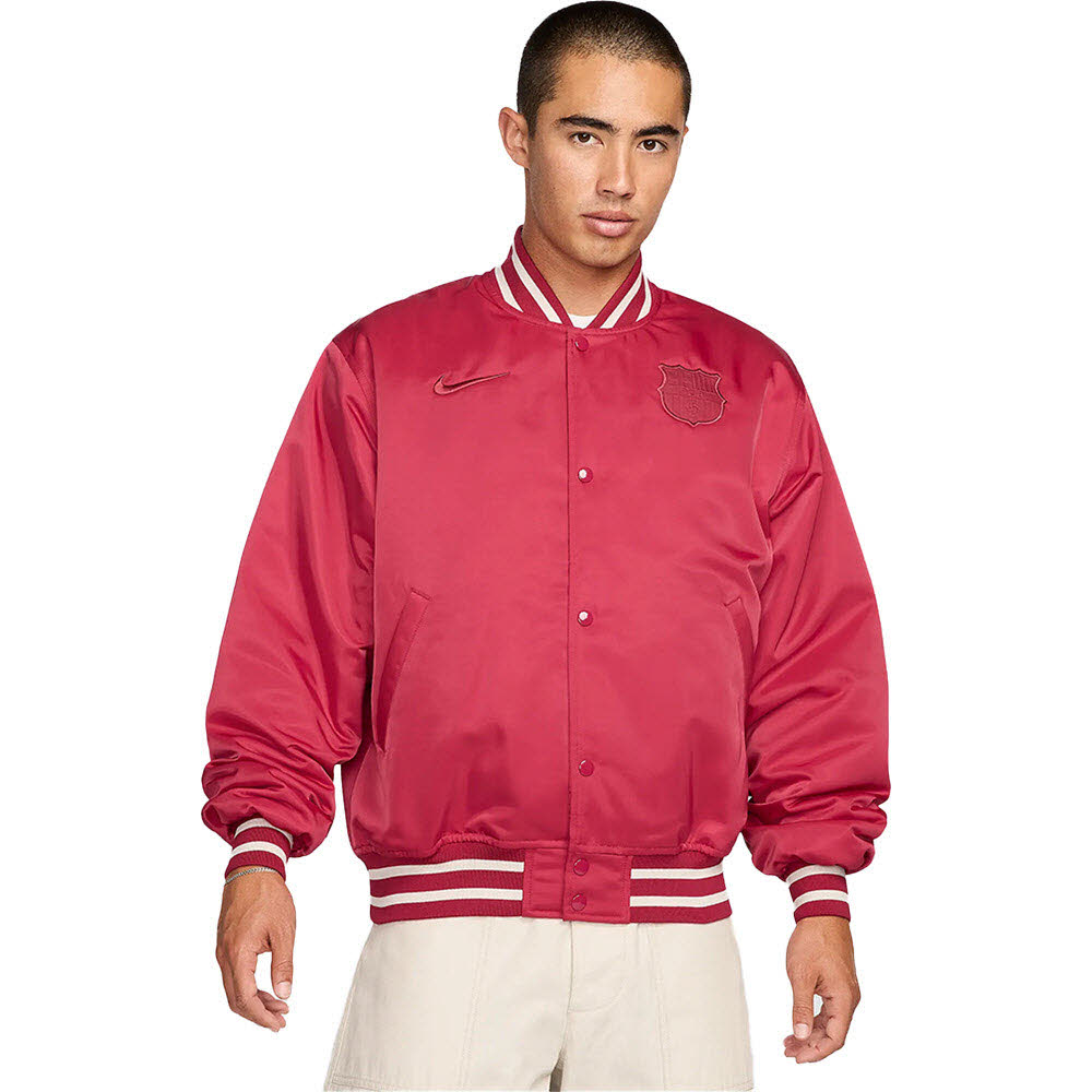 Die Jacke besticht durch ihre markante Optik in den traditionellen Farben des FC Barcelona. Das berühmte Vereinswappen auf der Brust symbolisiert deine Verbundenheit zum Klub und verleiht der Jacke einen authentischen Look. Die durchgehende Reißverschlussleiste ermöglicht einfaches An- und Ausziehen, während die seitlichen Taschen praktischen Stauraum für kleine Gegenstände bieten.