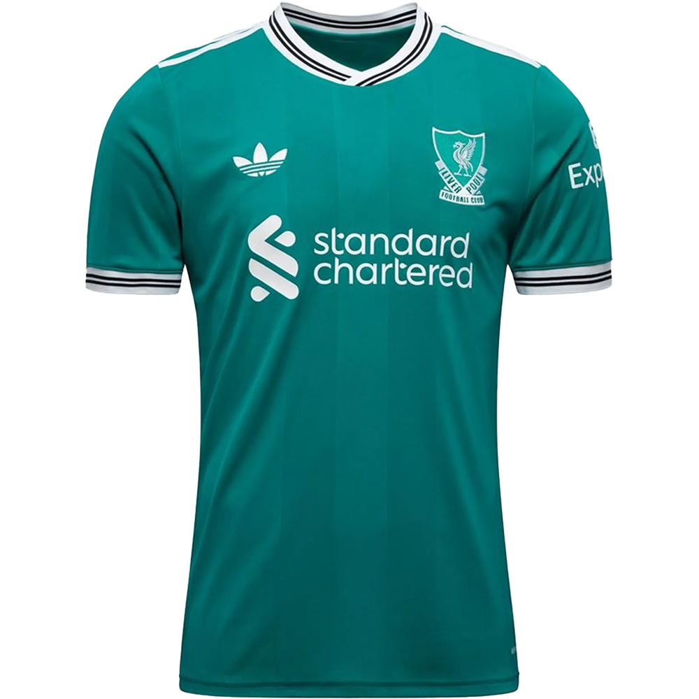 Ein moderner Fußballklassiker, inspiriert von der Geschichte mit 3-Streifen des FC Liverpool. Die Ton in Ton gehaltenen vertikalen Streifen auf diesem eleganten Ausweichtrikot sind im unverwechselbaren adidas Equipment Grün gehalten. Auf der Brust teilt sich das alte Vereinslogo zum ersten Mal seit 1991 das Rampenlicht mit einem Trefoil. Dieses Trikot wurde für reisende Reds entwickelt und enthält feuchtigkeitsregulierendes AEROREADY, damit es sich genauso gut anfühlt, wie es aussieht.