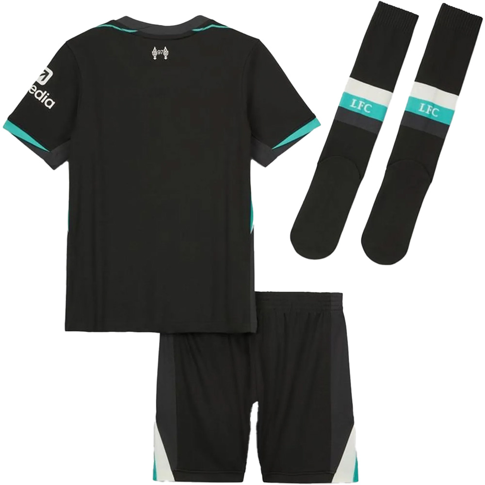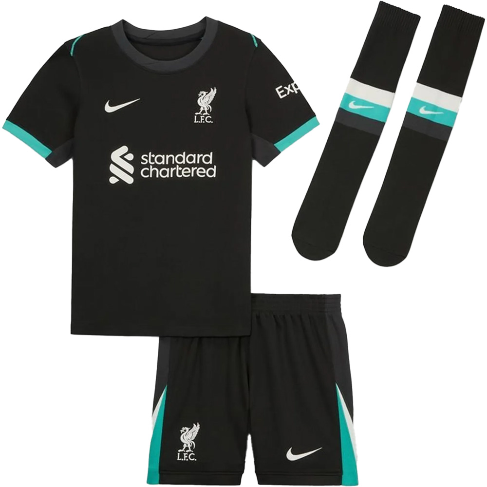 Das Liverpool FC Auswärtstrikot 2024/25 Mini-Kit für Kinder ist ein offizielles Nike-Produkt, das speziell für junge Fans entwickelt wurde. Es besteht aus einem dreiteiligen Set, das Trikot, Shorts und Socken umfasst und dem Design entspricht, das die Profis auf dem Spielfeld tragen.