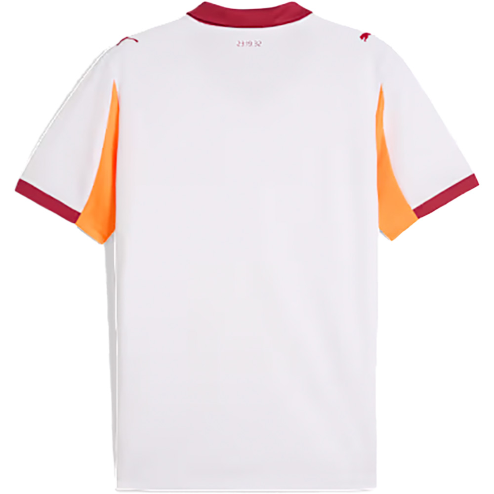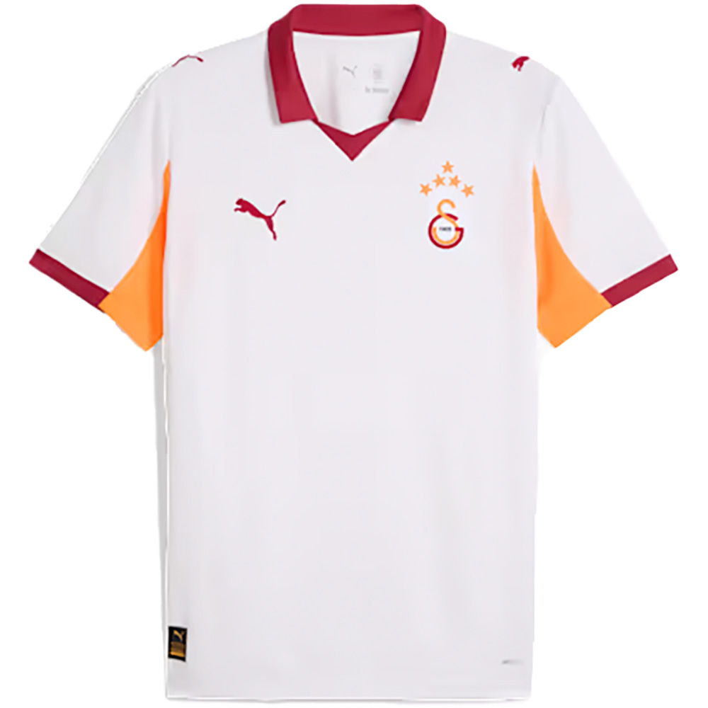 Das Galatasaray-Auswärtstrikot für die Saison 2025/26 präsentiert sich in einem eleganten und zugleich modernen Look. Der Grundton in strahlendem Weiß wird durch feine rote und orangefarbene Akzente an Kragen, Ärmelbündchen und Seitenpartien ergänzt, die die traditionellen Vereinsfarben stilvoll aufgreifen. Dieses schlichte, aber markante Design schafft einen harmonischen Kontrast zum auffälligen Heimtrikot und verkörpert die elegante Seite der „Löwen“. Gefertigt aus leichtem, atmungsaktivem Material mit integrierter dryCELL-Technologie, sorgt das Trikot für ein angenehm trockenes Tragegefühl – egal ob im Spiel oder beim Anfeuern auf der Tribüne. Der sportliche Schnitt bietet volle Bewegungsfreiheit und unterstützt dabei, sowohl Leistung als auch Komfort in den Vordergrund zu stellen. Nachhaltigkeit spielt ebenfalls eine wichtige Rolle: Das Trikot besteht zu einem großen Anteil aus recycelten Materialien. Mit diesem Auswärtstrikot setzt Galatasaray auf Understatement, ohne dabei auf Identität und Tradition zu verzichten – ein Must-have für Fans, die ihren Verein mit Stil und Stolz repräsentieren möchten.