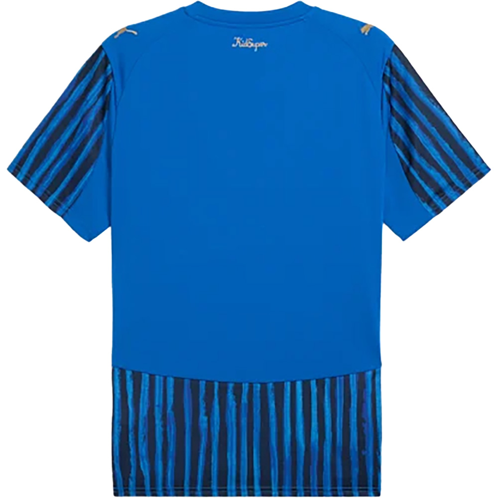Das Al-Hilal Heimtrikot ist Teil der PUMA x KIDSUPER Kollektion und greift die Bedeutung des Clubnamens auf – Al-Hilal bedeutet auf Arabisch Halbmond. Der Designer aus Brooklyn erweckt dieses Symbol in Blautönen zum Leben – mit einer leuchtenden Mondgrafik, die das stille Selbstvertrauen eines Teams widerspiegelt, das in ganz Asien als The Boss bekannt ist. Ein Trikot für Träumer, inspiriert vom Nachthimmel, der den Weg von Saudi-Arabien nach San Francisco weist. Denn wahre Größe steht nie still.