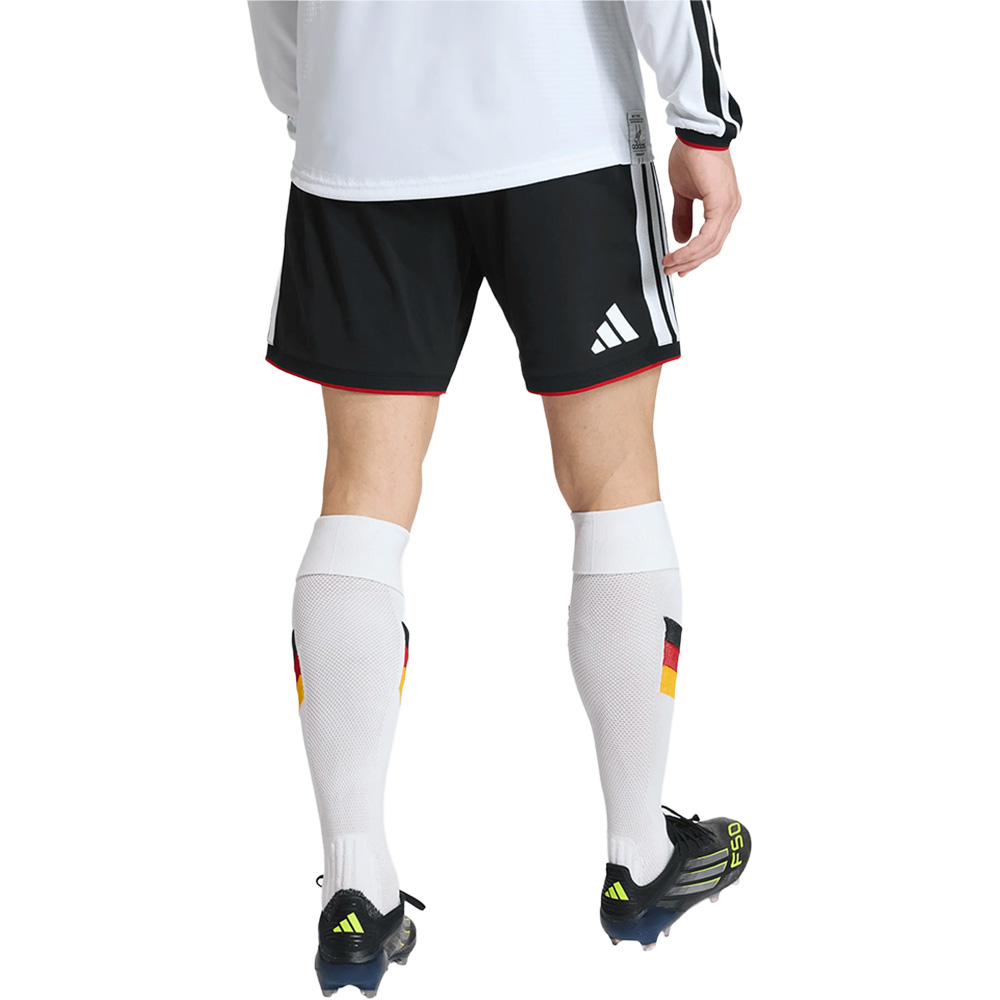 Wenn du das Spielfeld betrittst, willst du dich als Teil von etwas Größerem fühlen. Unsere Deutschland 26 Heimshorts sind dafür genau richtig. Sie sind inspiriert von legendären Fußballmomenten und verbinden klassische Elemente mit modernster Technologie. Damit sind sie schon jetzt ein Klassiker. Die Climacool Materialtechnologie leitet den Schweiß ab, damit du nicht von Nässe abgelenkt wirst und dich auch bei intensiven Spielen voll und ganz auf das Geschehen auf dem Spielfeld konzentrieren kannst. Der elastische Bund und der Kordelzugverschluss bieten ein sicheres Gefühl, sodass du dich selbstbewusst und ohne Ablenkung bewegen kannst. Durch den regulären Schnitt erhältst du eine Passform, die weder zu eng noch zu weit ist und dir zu Höchstleistungen verhilft. Die Shorts sind aus einer Interlock-Konstruktion gefertigt und bieten Strapazierfähigkeit und Komfort – eine willkommene Wahl für intensive Spielmomente. Mit dem kultigen adidas Schriftzug und dem Deutschland-Wappen zeigen sie deine Leidenschaft für den Fußball. Ob du auf dem Spielfeld stehst oder als Fan mitfieberst – diese Shorts sorgen dafür, dass du dich als Teil des Teams fühlst. Denn es geht um mehr als um Kleidung. Es geht um einen Lifestyle.