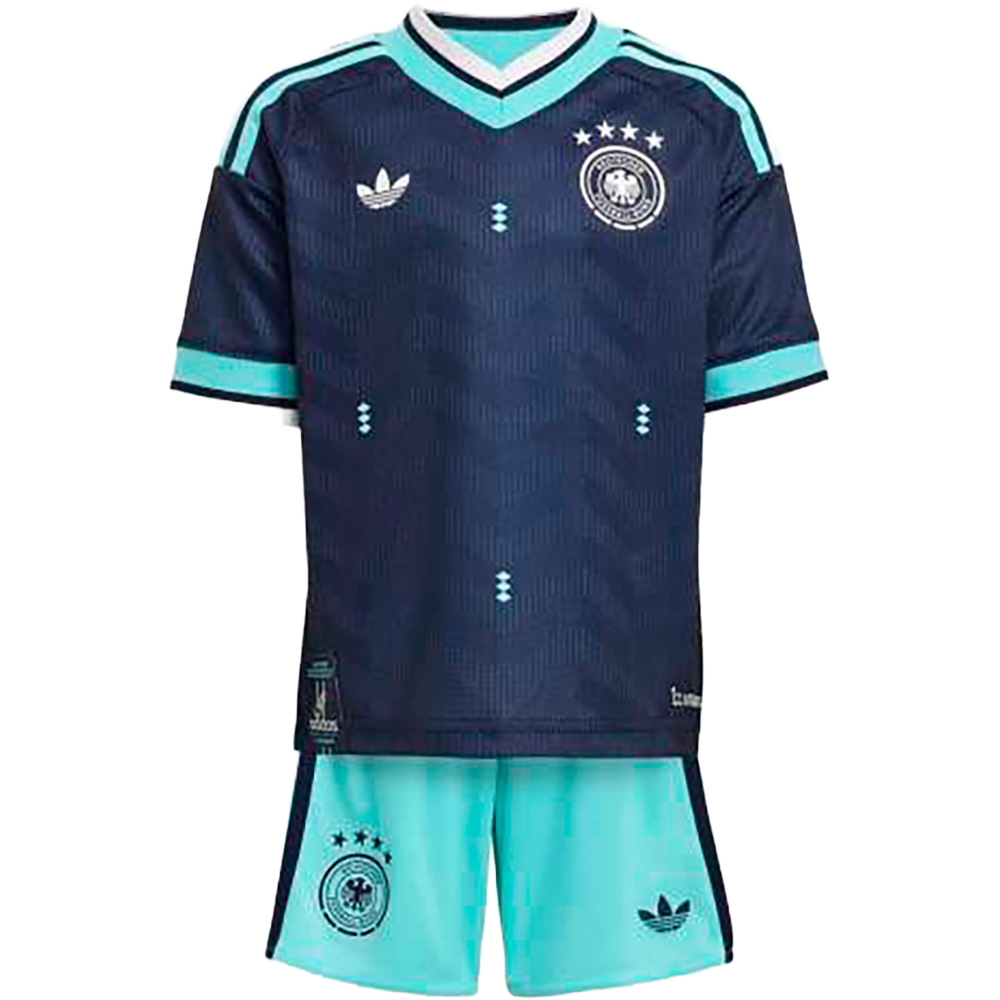 Deutschland 26 Auswärts Replica Kinder-SetDas Deutschland 26 Auswärts Replica Kinder-Set ist perfekt für junge Fans, die ihre Fußballhelden nachahmen möchten.Dieses Set enthält Trikot und Shorts, beide aus feuchtigkeitsableitenden und schnelltrocknenden Materialien, die dafür sorgen, dass Kinder komfortabel und trocken bleiben.Der reguläre Schnitt bietet eine lockere Passform und sorgt für Bewegungsfreiheit, während das ikonische adidas Logo und das DFB-Verbandswappen einen authentischen Look verleihen.