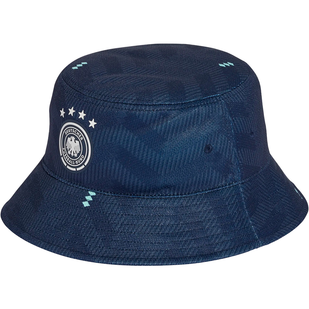 DFB Germany FischerhutBring deinen Fan-Look auf das nächste Level mit dem DFB Germany Fischerhut – eine stylische Hommage an das Fußballtrikot, das ihn inspiriert hat.Teilweise aus recycelten Materialien gefertigt, ist dieser Fischerhut perfekt für Freizeit und Fanwear und ermöglicht es dir, dein Team mit Stolz und Stil zu unterstützen.