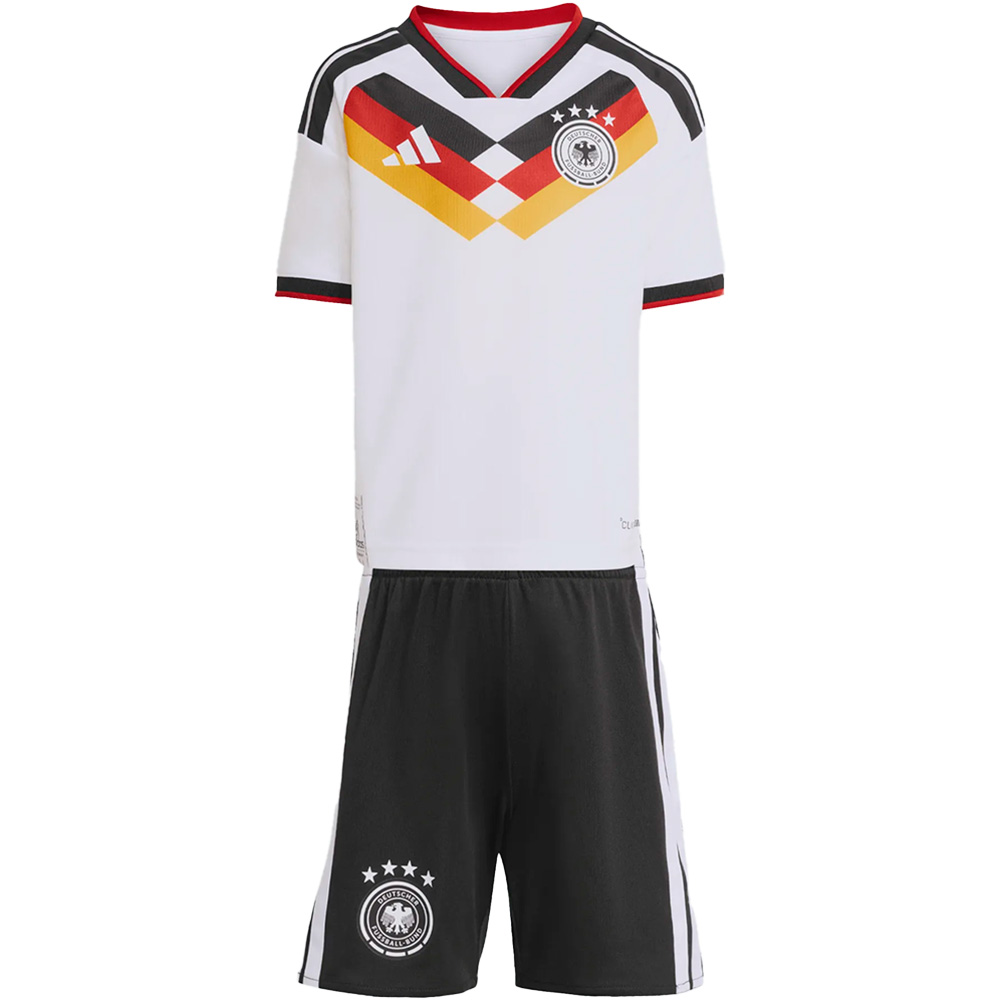 Beim Fußball zählt jedes Detail. Das Deutschland 26 Heim-Set wurde entwickelt, um junge Fans zu begeistern. Dieses Set ist eine Hommage an das Erbe des deutschen Fußballs und zeigt klassische Trikot-Elemente aus legendären Momenten, die für die Zukunft neu interpretiert wurden. Die integrierten Climacool und Aeroready Materialtechnologien leiten den Schweiß ab und sorgen für ein kühles, trockenes und ablenkungsfreies Tragegefühl, damit du dich frisch und bequem fühlst, ganz gleich, ob du auf dem Spielfeld aktiv bist oder von der Tribüne aus jubelst. Mit seiner regulären Passform bietet dieses Set hohen Tragekomfort und volle Bewegungsfreiheit – eine gute Wahl für aktive Kinder. Der zusätzliche Schriftzug mit Flagge verleiht die nötige Authentizität und macht dieses Set zu einem absoluten Must-have für junge Fußballfans. Mit diesem Set kann dein Kind selbstbewusst und stilvoll in die Welt des Fußballs eintauchen. Bei adidas geht es um mehr als nur um Kleidung. Die Marke ist ein Symbol für Leidenschaft und Stolz.