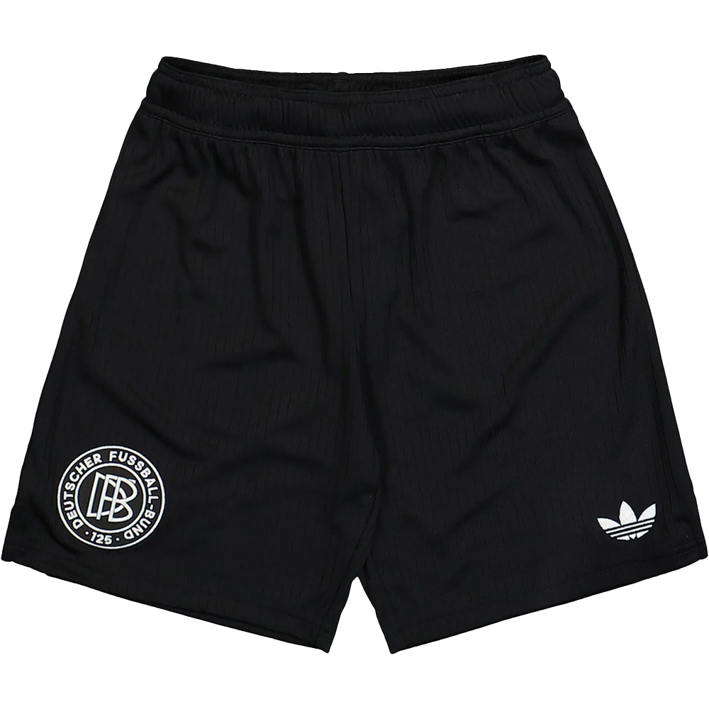 Mit diesen speziellen adidas Shorts feiern wir 125 Jahre deutsche Nationalelf. Sie sind Teil der Ausrüstung, die von dieser Erfolgsgeschichte inspiriert ist und die Verbundenheit des Teams mit adidas feiert. Das Design in klassischem Schwarz-Weiß kommt mit einem Ton in Ton gehaltenen Trefoil und einem besonderen DFB Jubiläumslogo. Außerdem sorgt die feuchtigkeitsabsorbierende AEROREADY Technologie beim Anfeuern für ein angenehm trockenes Tragegefühl.