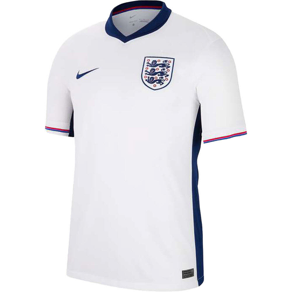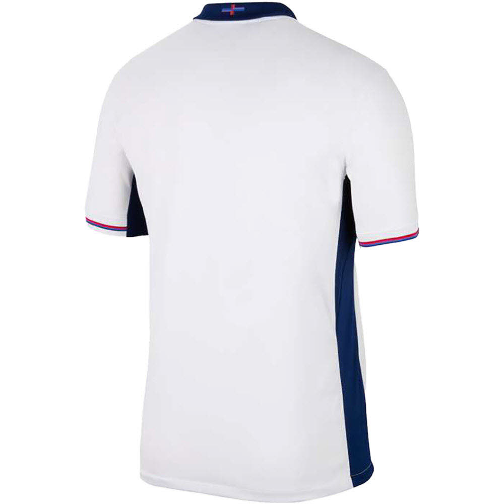 Das England-Heimtrikot 2024/25 verbindet Tradition und Moderne in einzigartiger Weise. Die weiße Farbe, seit 1872 das Markenzeichen der englischen Nationalmannschaft, bleibt auch in diesem Modell unberührt. Nike setzt auf die schlichte Eleganz dieses Klassikers und hebt das Design mit dezenten Details hervor, die eine Hommage an den Trainer darstellen, der England 1966 zum Weltmeistertitel führte. Streifen an den Ärmelbündchen und am Nackenband greifen die Farben des damaligen Trainingsanzugs auf und verleihen dem Trikot eine besondere Note, die die glorreiche Geschichte des englischen Fußballs würdigt. Dank der Nike Dri-FIT-Technologie wird beim Tragen des Trikots ein hoher Komfort gewährleistet. Diese Technologie leitet Feuchtigkeit schnell von der Haut ab und fördert die Verdunstung, sodass Spieler und Fans auch bei intensiver Aktivität stets trocken und angenehm gekühlt bleiben. Das macht das Trikot besonders praktisch für leidenschaftliche Fans, die sich auf das Spiel konzentrieren wollen, ohne durch Feuchtigkeit abgelenkt zu werden. Dieses Trikot gehört zur Nike Stadium-Kollektion und verleiht Fans einen authentischen Look, der dem der Profis nachempfunden ist. Zu den Details gehören das Georgskreuz-Muster auf den Seitenteilen und der umklappbare Kragen mit Streifen auf der Innenseite, die sowohl klassischen als auch modernen Stil vereinen. Diese besonderen Elemente machen das Trikot zu einem Hingucker auf und neben dem Spielfeld. Aus 100 % Polyester gefertigt, ist das Trikot leicht zu pflegen und maschinenwaschbar. Mit diesem Heimtrikot können junge Fans die Geschichte der „Three Lions“ stolz repräsentieren und die Tradition Englands voller Stil und Komfort fortführen.