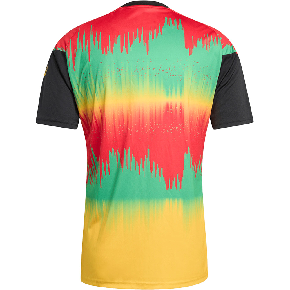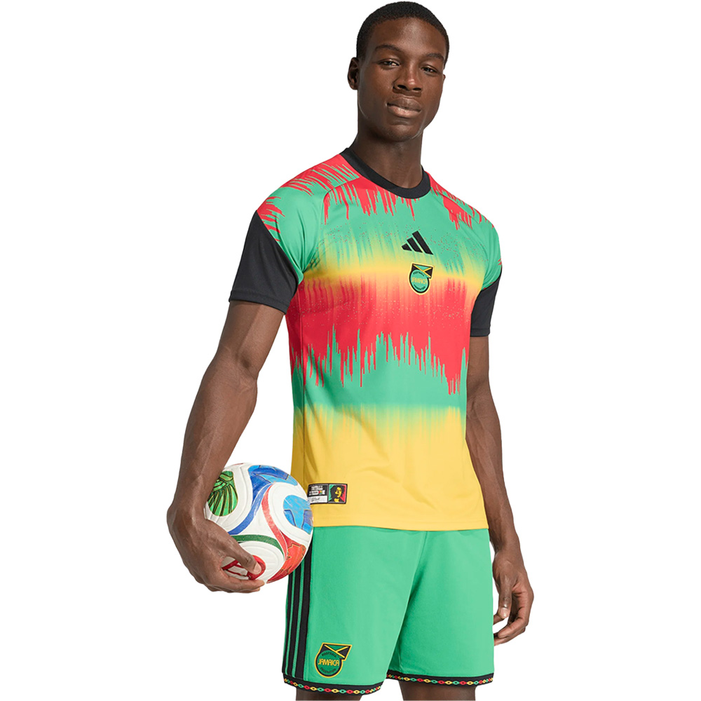 Jamaika 26 Home Pre-Match Trikot HerrenDie Jamaica 26 Home Pre-Match Trikots für Herren bringen die lebendige Energie des Reggae auf das Fußballfeld.Mit Slim-Fit-Schnitt und Rundhalsausschnitt sind diese Trikots perfekt für das Training auf dem Platz.Das schweißableitende und schnelltrocknende Material sorgt dafür, dass du trocken und komfortabel bleibst, während die Strickkonstruktion einen sportlich-eleganten und atmungsaktiven Sitz bietet.Feiere das Erbe von Bob Marley mit Trikots, die ikonische Farben mit leistungsorientierten Features verbinden.
