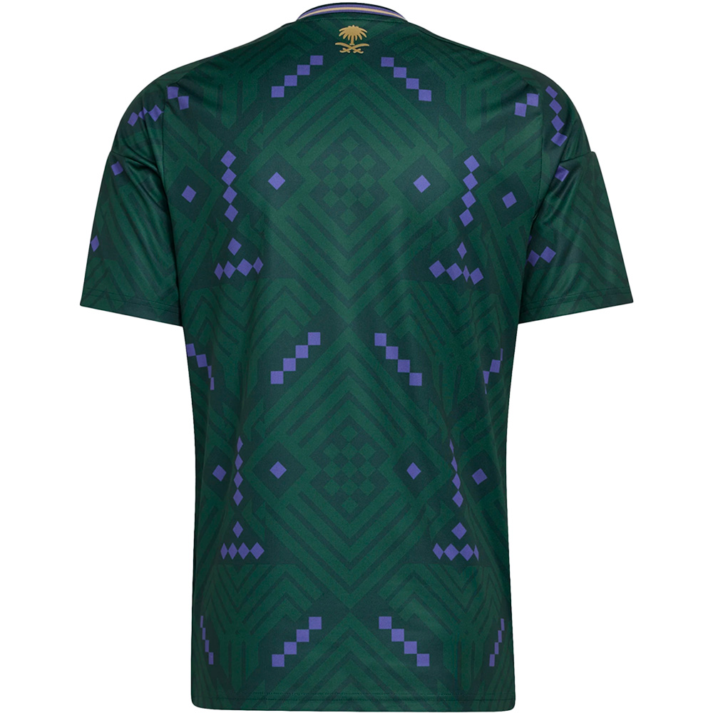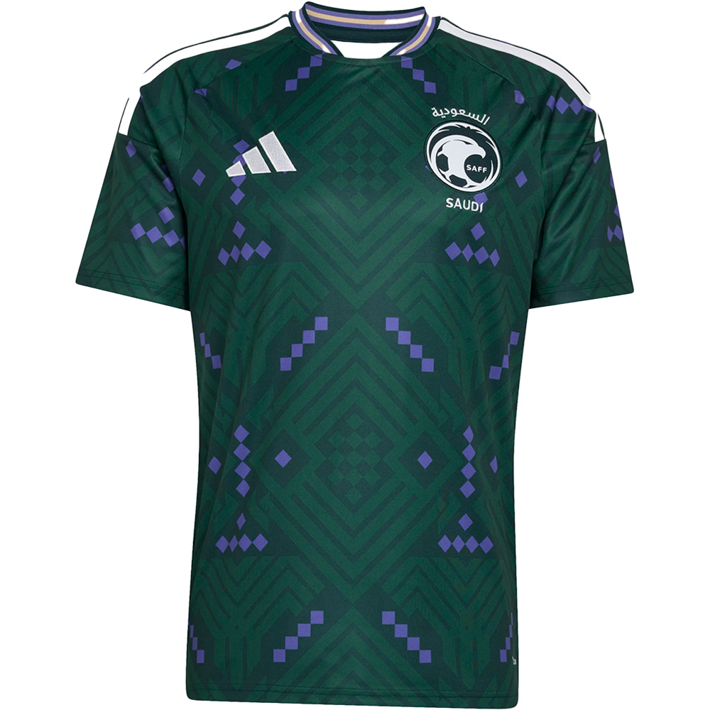 Inspiriert durch das reiche kulturelle Erbe des Landes, kombiniert das Saudi-Arabien 26 Heimtrikot traditionelle Kunst mit einem modernen Twist. Die dunkelgrüne Grundfarbe wird durch lila Farbtupfer akzentuiert und sorgt so für einen auffälligen Look. Dieses Trikot ist aus atmungsaktivem Climacool gefertigt, ein Material, das am Spieltag für Kühlung und Komfort sorgt. Das Interlock-Material sorgt zudem für eine bequeme Passform, während das schlanke Design eine elegante Silhouette bietet. Das aufgestickte adidas Logo und das Vereinslogo werden mit viel Klasse stolz zur Schau gestellt. Ganz gleich, ob du von der Tribüne aus jubelst oder selbst spielst, mit diesem authentischen Trikot zeigst du stilvoll deine Unterstützung für Saudi-Arabien.