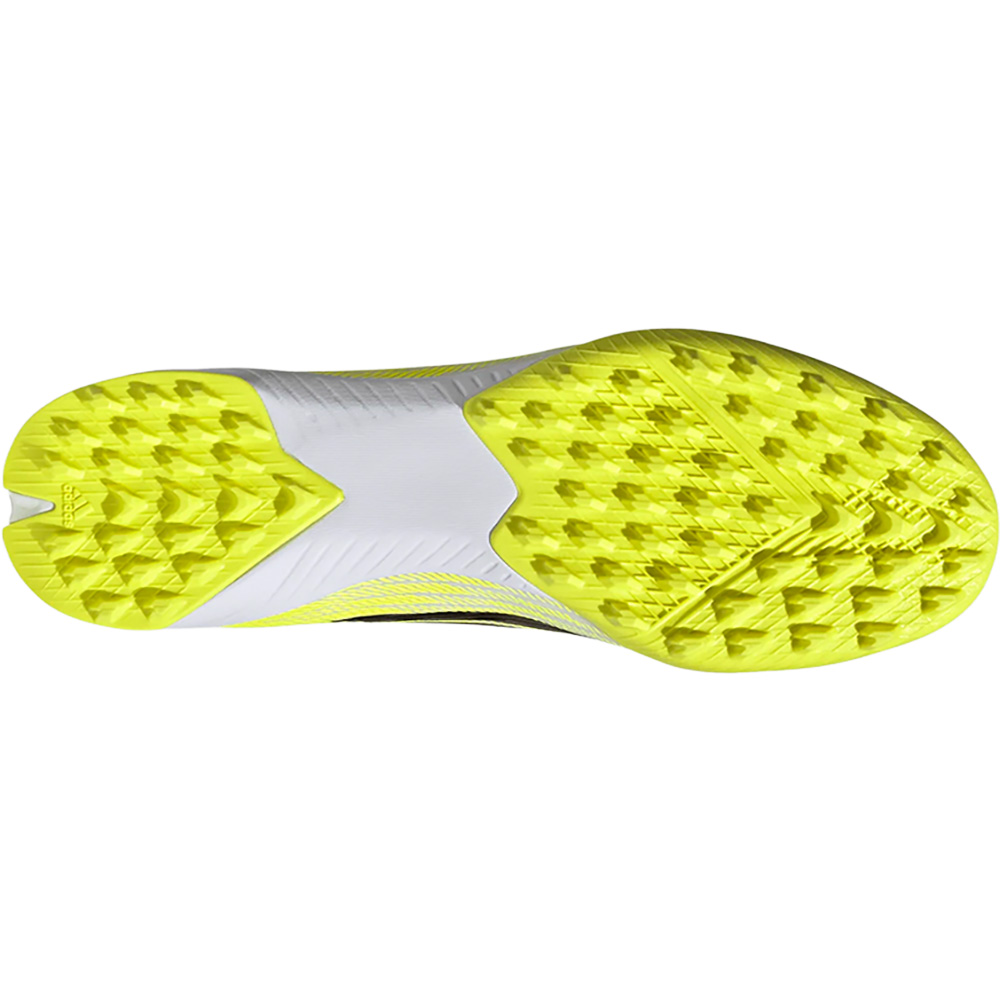 Ein Fiberskin Obermaterial mit 3D-Linien erzeugt einen dynamischen Look. Der verlängerte Strickschaft passt sich der Form deines Fußes an und bietet Halt, während die Außensohle für Kunstrasen Grip und volle Kontrolle bietet.