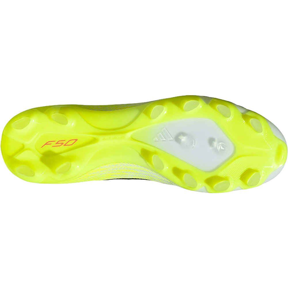 Die F50 Pro Multi Ground Fußballschuhe sind entwickelt für Spieler, die auf verschiedenen Untergründen maximale Geschwindigkeit und Präzision abrufen möchten. Das Fibertouch-Obermaterial bietet gezielte, leichte Unterstützung und Dämpfung, während die Sprintweb 3D-Struktur ein verbessertes Ballgefühl und präzisen Kontakt ermöglicht. Die anpassungsfähige, leichte Compression Fit Tunnel-Zunge sorgt für optimalen Halt und eine individuell abgestimmte Passform. Die Multi-Ground-Außensohle ist für unterschiedliche Plätze optimiert, verteilt den Druck gleichmäßig und unterstützt schnelle Richtungswechsel sowie präzise Rotationsbewegungen – perfekt für Spieler, die ihr Tempo und ihre Kontrolle auf jedem Untergrund voll ausspielen wollen.