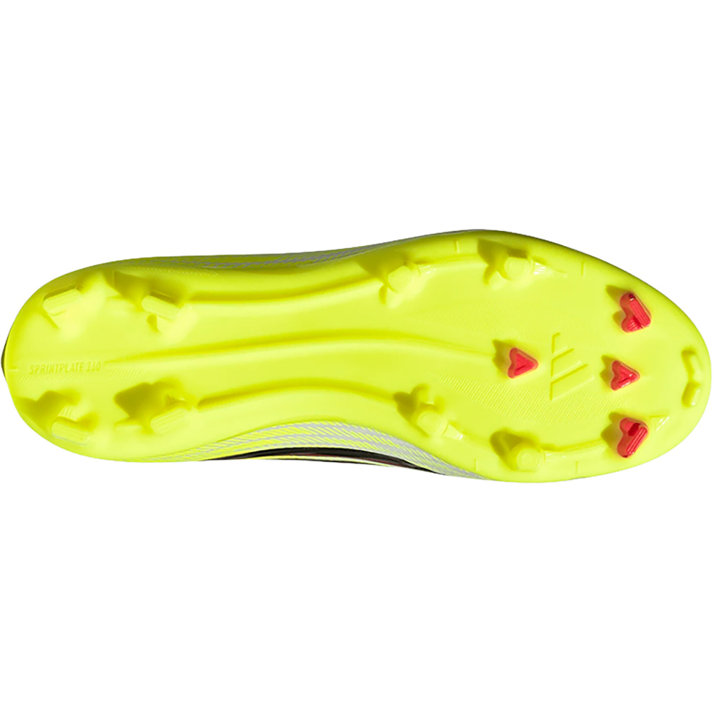 Das Obermaterial aus Fiberskin unterstützt die Ballkontrolle, während die frei liegende Zunge für Komfort und Atmungsaktivität sorgt. Die Sprintplate 360 Technologie bietet eine Außensohle mit einer Kombination aus Stollen und halbkonischen Stollen, die Geschwindigkeit und Agilität unterstützen.