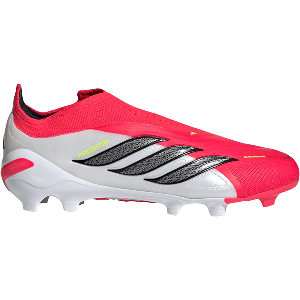 Die Predator Elite Laceless Firm Ground Fußballschuhe für Kinder sind gemacht für maximale Kontrolle und Durchschlagskraft vor dem Tor. Der schnürsenkellose Primeknit-Kragen passt sich optimal der Fußform an und sorgt für einen eng anliegenden, komfortablen Sitz. Dank der innovativen Nanostrike-Technologie mit spezieller Mesh- und Strike-Struktur wird die Schusspräzision deutlich verbessert und jede Ballberührung gezielt unterstützt. Eine leichte, durchgehende Sohlenplatte in Kombination mit optimaler Traktion auf Naturrasenplätzen ermöglicht explosive Bewegungen und sicheres Auftreten. Der Predator Elite steht für moderne Performance und ist die perfekte Wahl für junge Spieler, die ihr Spiel dominieren und den Unterschied machen wollen.