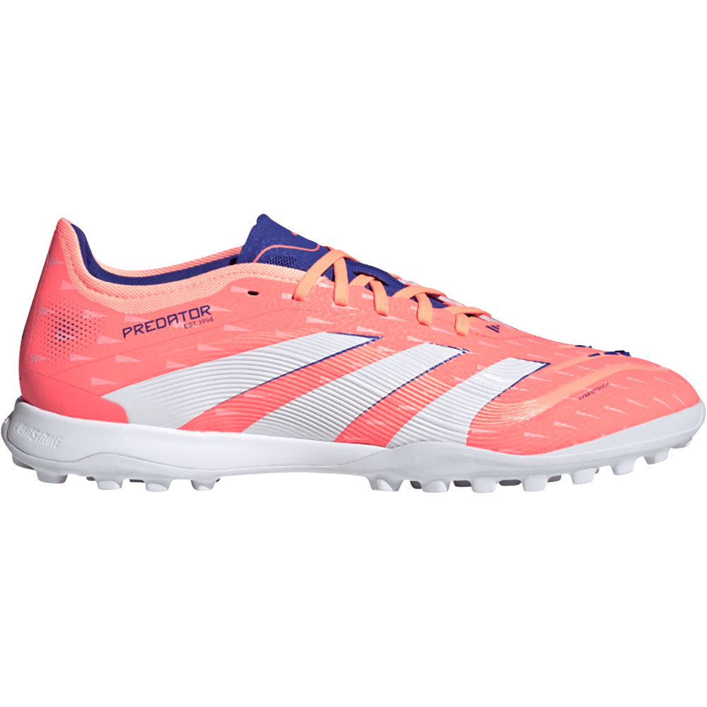 Der Unterschied zwischen dem Ziel, ein Tor zu schießen, und der Gewissheit, dass du es schaffst? Der adidas Predator Fußballschuh. Dieser Pro Fußballschuh hat ein flexibles HybridTouch-Obermaterial und griffige Strikeskin Gummilamellen, die dir bei jedem Schuss volle Ballkontrolle geben. Die niedrig profilierte Lightstrike Zwischensohle sitzt auf einer Gummiaußensohle und unterstützt das instinktive Spiel vor dem Tor.