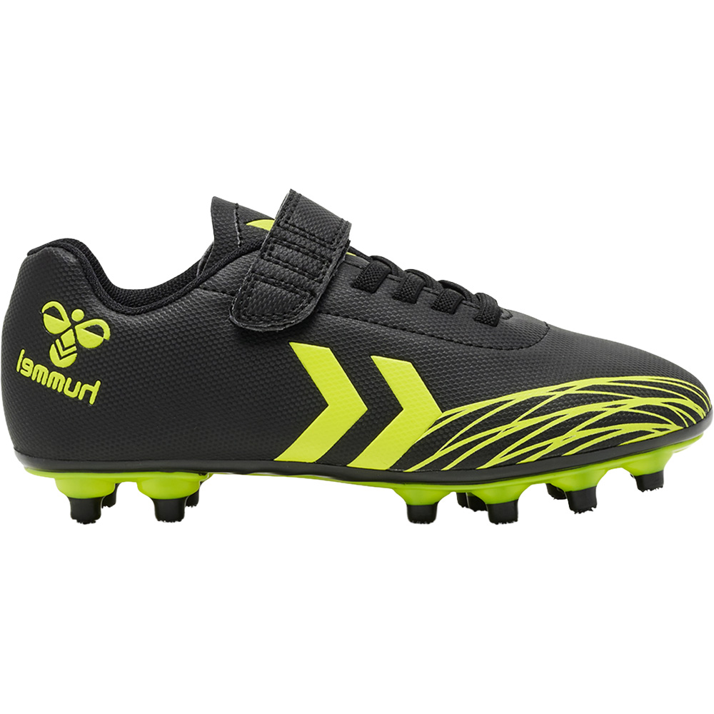 Fußballschuh für feste Böden. Ein weiches PU-Obermaterial mit elastischen Schnürsenkeln und Klettverschluss, weichem Mesh-Futter und gestanzter Innensohle. Prägungs- und Druckdetails auf dem Obermaterial. Inspiriert von der stolzen Geschichte der Fußballschuhe von hummel.
