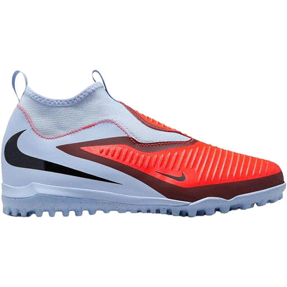 Der Nike JR Phantom GX 2 Academy High TF bietet jungen Fußballer*innen die perfekte Mischung aus Technik, Komfort und Halt auf Kunstrasen- und Hartplätzen. Das strukturierte Synthetik-Obermaterial ermöglicht präzises Ballgefühl, während der knöchelhohe Dynamic Fit-Schuhkragen für zusätzlichen Halt und Stabilität bei schnellen Bewegungen sorgt.Die Turf-Außensohle mit kleinen Gummistollen liefert zuverlässige Traktion auf künstlichen Belägen – ideal für schnelle Richtungswechsel und kontrolliertes Spiel in engen Räumen.