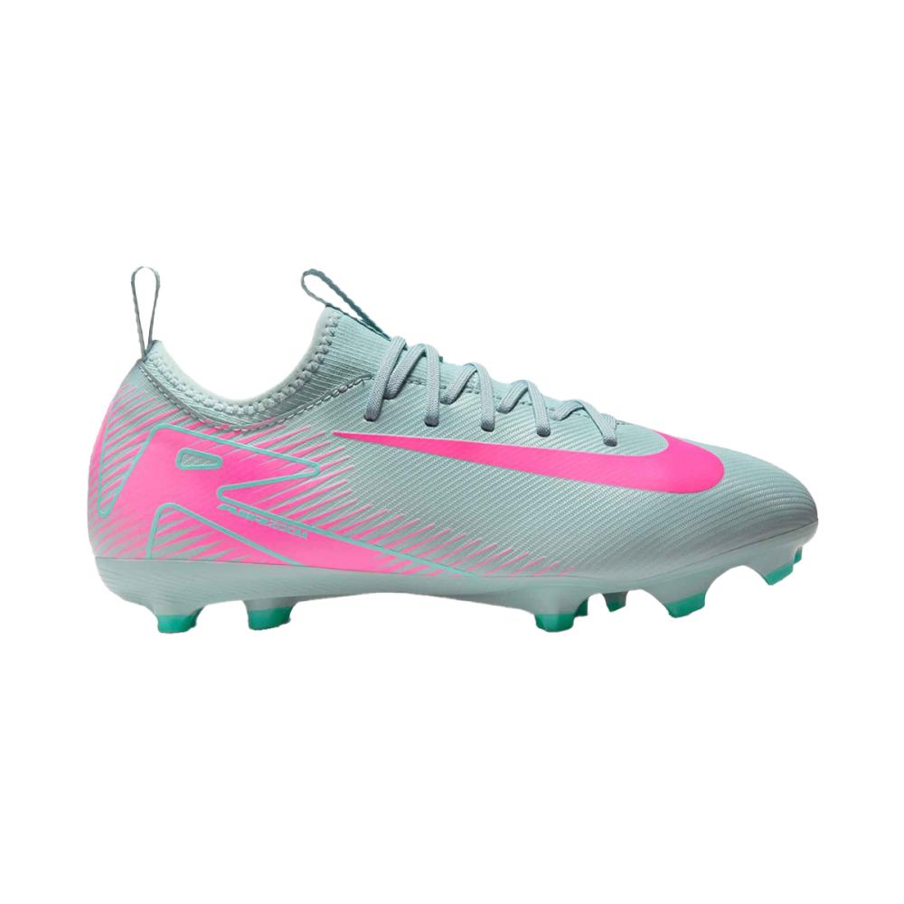 Der Zoom Vapor 16 Academy FG/MG für Kinder in der Farbgebung Ocean Cube/Pink Blast ist der perfekte Fußballschuh für junge Spieler, die auf festen oder leicht feuchten Böden ihre Geschwindigkeit und Präzision unter Beweis stellen möchten. Mit seinem auffälligen Design und innovativen Technologien bietet dieser Schuh außergewöhnlichen Komfort und Leistung.