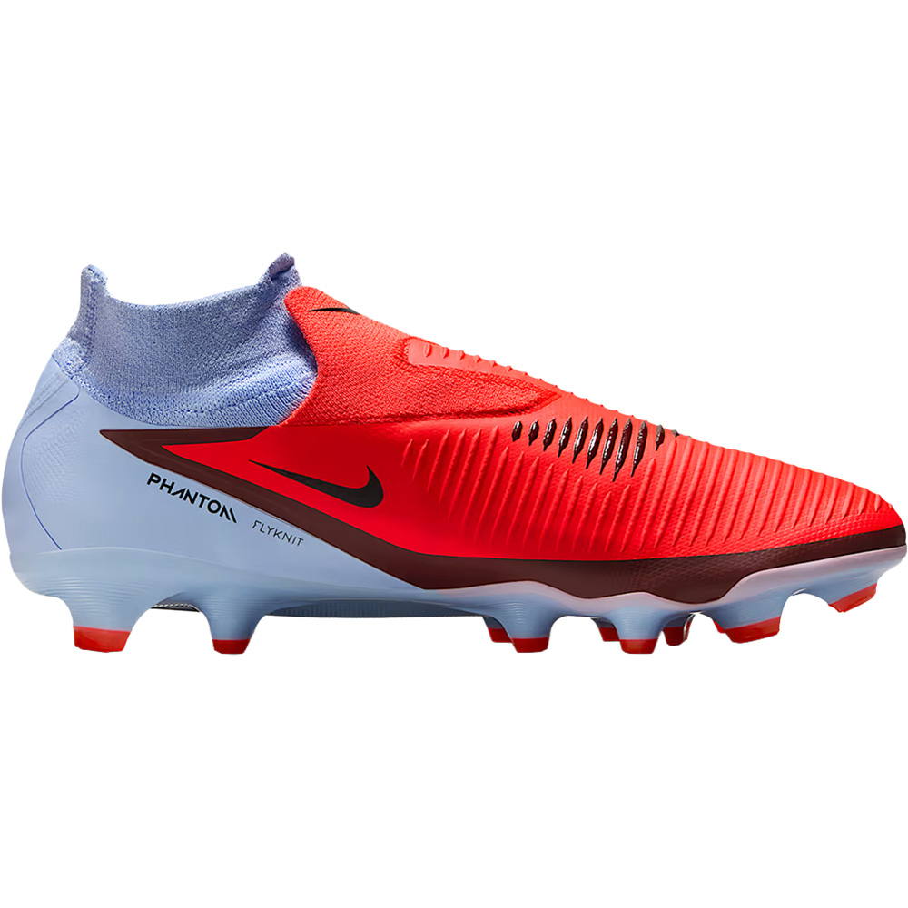 Der Nike Phantom 6 High Pro FG ist ein hochentwickelter Fußballschuh, der speziell für Spieler entwickelt wurde, die auf festen Rasenplätzen (Firm Ground) höchste Präzision und Kontrolle suchen. Das Obermaterial aus VNMSkin-Technologie und Flyknit-Material sorgt für eine griffige Oberfläche, die das Ballgefühl beim Dribbeln, Passen und Schießen verbessert. Die innovative Cyclone 360-Außensohle mit kreisförmigem Stollenmuster ermöglicht schnelle Drehungen und explosive Bewegungen, während die Dynamic Fit-Konstruktion mit einem flexiblen, dehnbaren Kragen für einen sicheren Sitz sorgt. Ein neues Schuhrahmendesign bietet eine natürlichere Passform, insbesondere im Zehenbereich, und bringt den Fuß näher an den Ball für präzisere Schüsse. Der Phantom 6 High Pro FG kombiniert modernste Technologie mit bewährtem Design und ist die ideale Wahl für Spieler, die ihre Leistung auf dem Spielfeld maximieren möchten.
