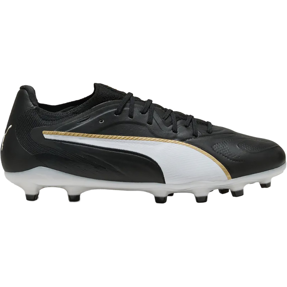 Die FG/AG-Laufsohle bietet verlässliche Traktion und sicheren Halt auf unterschiedlichen Untergründen. Sie unterstützt schnelle Richtungswechsel und dynamische Spielbewegungen, während die interne Dämpfung den Fuß auch bei intensiven Spielsituationen schützt. Der KING 20 ULTIMATE steht für klassisches Design, hochwertige Materialien und erstklassige Fußball-Performance.