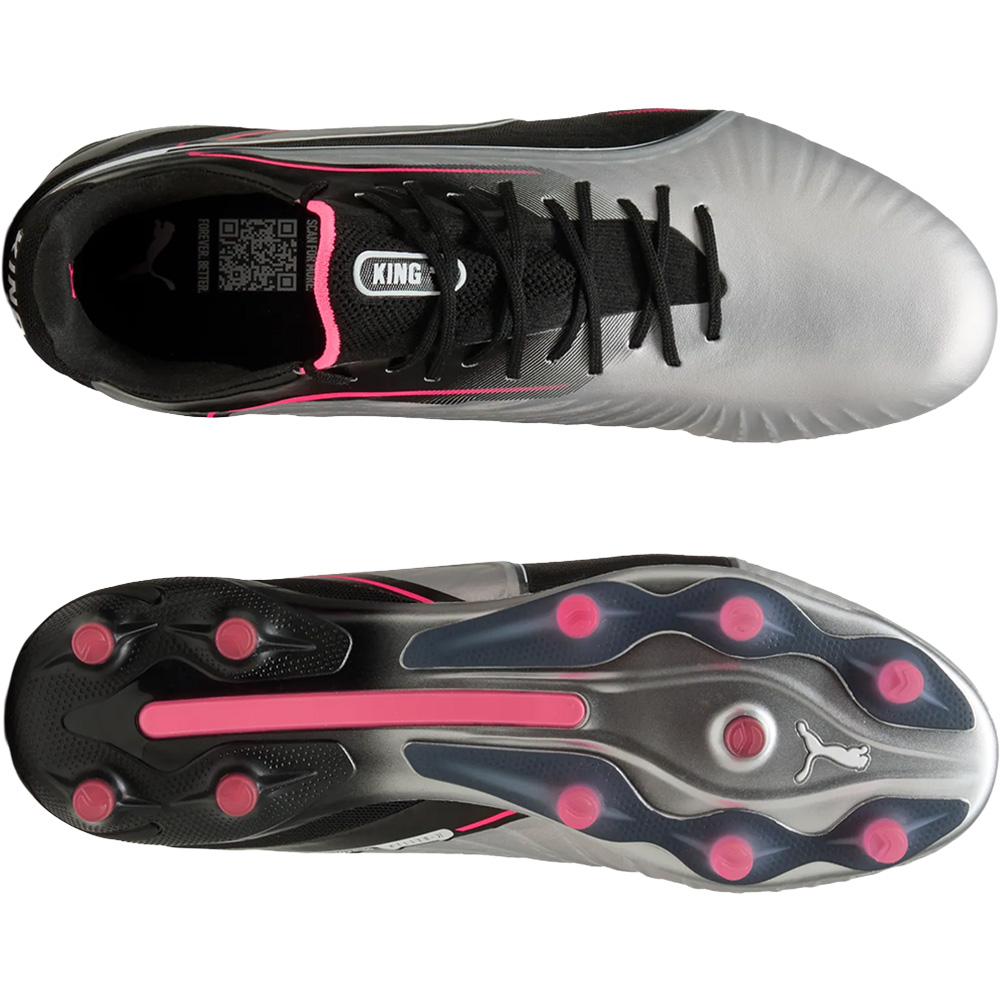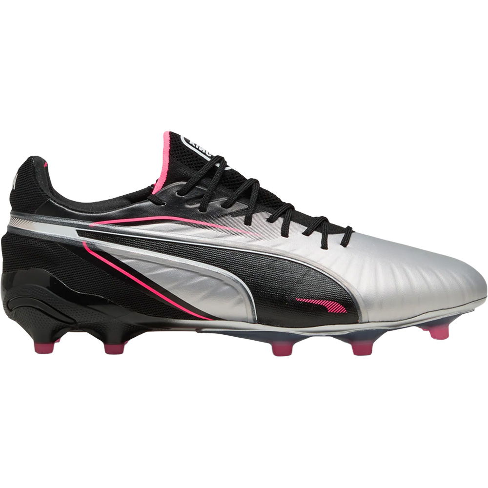 Der Puma King Ultimate FG/AG ist ein hochwertiger Fußballschuh, der sowohl für Rasen- als auch Kunstrasenplätze geeignet ist. Mit einem Obermaterial aus weichem Leder bietet er hervorragende Ballkontrolle und Komfort. Die FG/AG-Außensohle sorgt für optimale Traktion auf beiden Untergründen, während das klassische Design modernen Stil mit hoher Performance kombiniert.