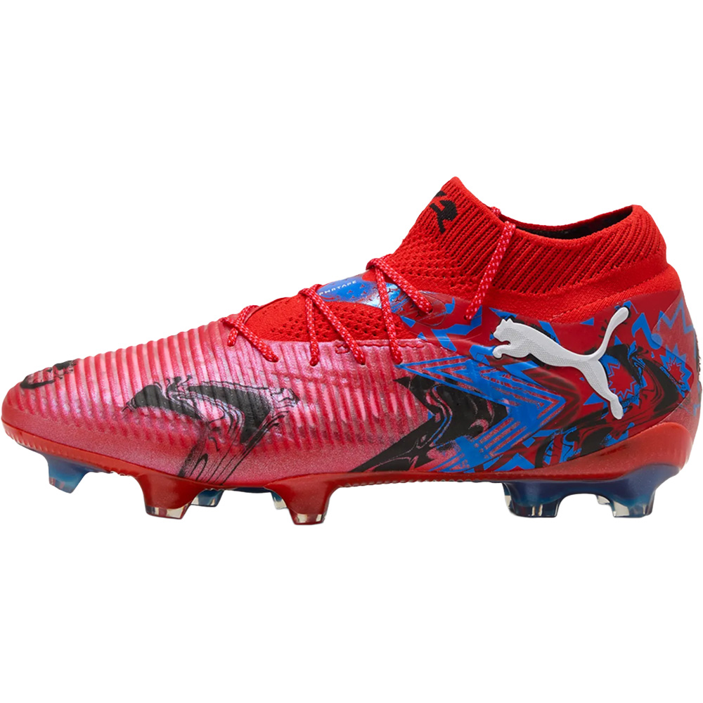 Der Puma Future 8 Ultimate Playmakers FG ist ein hochentwickelter Fußballschuh, der speziell für kreative Spieler entwickelt wurde, die auf festem Rasen (Firm Ground) maximale Agilität und Ballkontrolle suchen. Das innovative FUZIONFIT³-Obermaterial kombiniert elastische LYCRA®-Fasern mit 3D-FUZIONPODS und PWRTAPE, um eine adaptive Passform zu gewährleisten, die sich wie eine zweite Haut anfühlt und gleichzeitig Stabilität bietet. Die strukturierte High-Density-Mesh-Schicht mit GripControl Pro-Beschichtung sorgt für verbesserten Halt und Kontrolle am Ball, ideal für präzises Dribbling und kreative Spielgestaltung. Die neu entwickelte FLEXGILITY-Sohle ermöglicht 360-Grad-Beweglichkeit, sodass Spieler blitzschnelle Richtungswechsel und agile Bewegungen ausführen können, um Gegner zu überlisten und Chancen zu kreieren. Das auffällige Design in den Farben Puma Red, Puma Black, Ultra Blue und Pink Pixel verleiht dem Schuh nicht nur eine moderne Optik, sondern spiegelt auch die Energie und Kreativität wider, die er seinem Träger verleiht.
