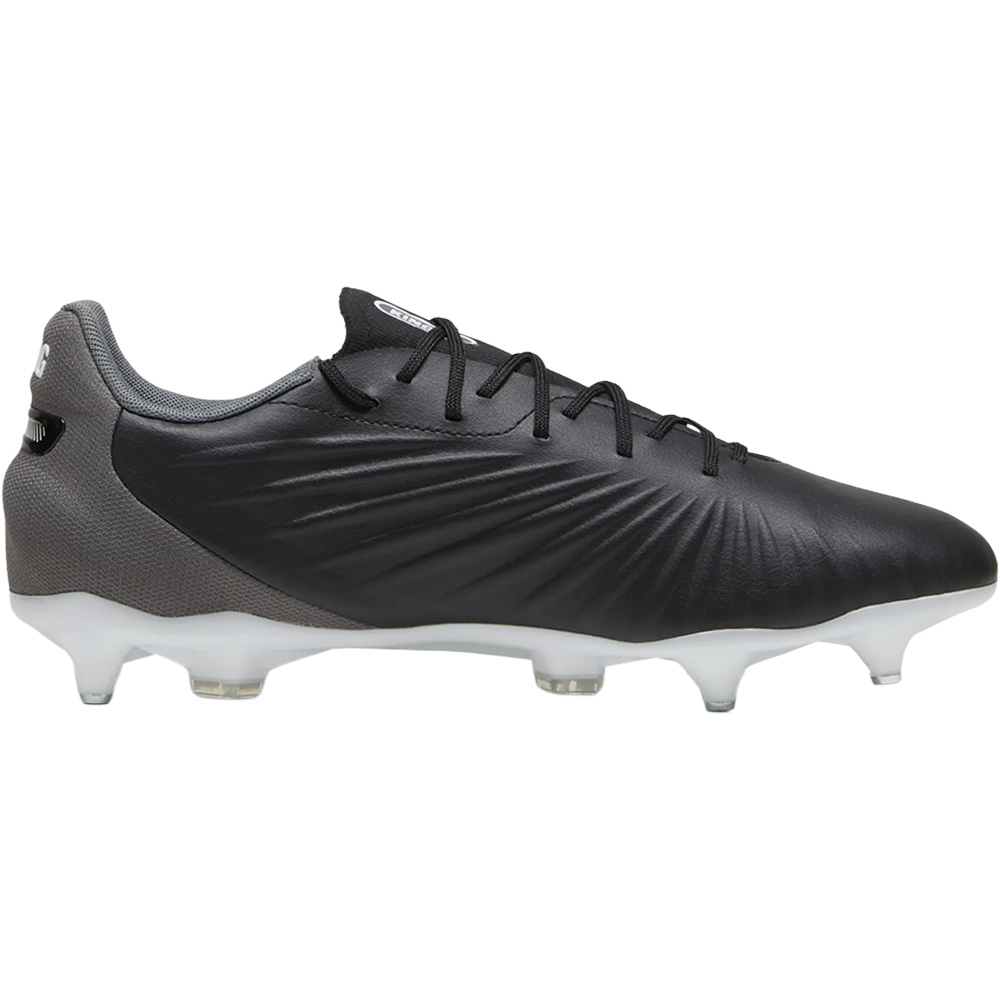 Die Puma King Match MxSG Fußballschuhe vereinen klassischen Stil mit moderner Performance und sind speziell für Spieler entwickelt, die auf weichen bis gemischten Rasenplätzen maximale Kontrolle und Komfort suchen. Das Obermaterial besteht zu mindestens 30?% aus recycelten Materialien und bietet eine weiche, synthetische Oberfläche für exzellentes Ballgefühl. Die leichte TPU-Außensohle mit fixierten Metallstollen sorgt für optimale Traktion auf weichen natürlichen Oberflächen, während die reguläre Passform und die niedrige Schnittführung einen sicheren Halt und Bewegungsfreiheit gewährleisten. Mit ihrem zeitlosen Design und der funktionalen Ausstattung sind die King Match MxSG Fußballschuhe die ideale Wahl für Spieler, die sowohl auf dem Spielfeld als auch abseits davon eine gute Figur machen möchten.
