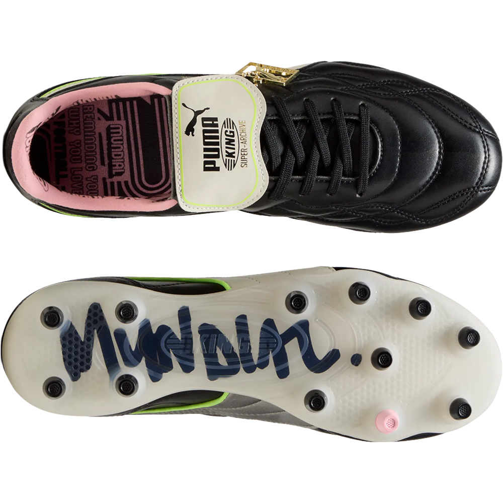 Der Puma King Top x Mundial FG/AG ist ein klassischer Fußballschuh, der mit modernster Technologie kombiniert wurde. Er bietet eine hervorragende Passform, Komfort und Haltbarkeit, sowohl auf festem Rasen (FG) als auch auf Kunstrasen (AG). Das Obermaterial aus hochwertigem Leder sorgt für eine ausgezeichnete Ballkontrolle und ein angenehmes Tragegefühl, während die spezielle Sohle perfekten Grip und Stabilität auf beiden Untergründen bietet. Dieser Schuh ist ideal für Spieler, die eine perfekte Mischung aus Tradition und Innovation suchen.