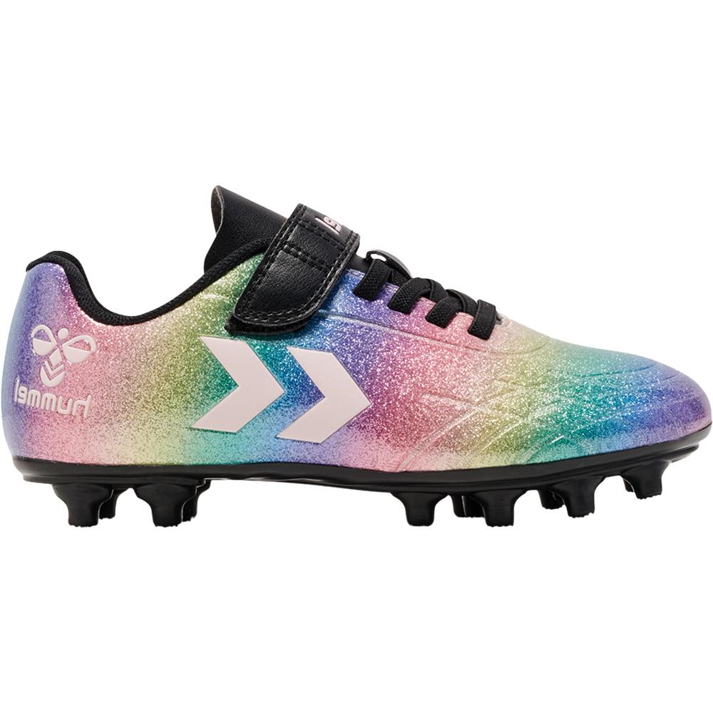 Fußballschuh für feste Böden. Ein weiches PU-Obermaterial mit elastischen Schnürsenkeln und Klettverschluss, weichem Mesh-Futter und gestanzter Innensohle. Prägungs- und Druckdetails auf dem Obermaterial. Inspiriert von der stolzen Geschichte der Fußballschuhe von hummel.
