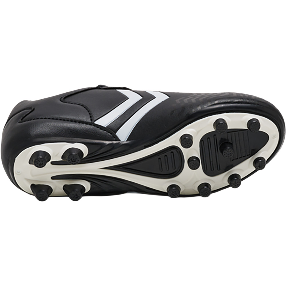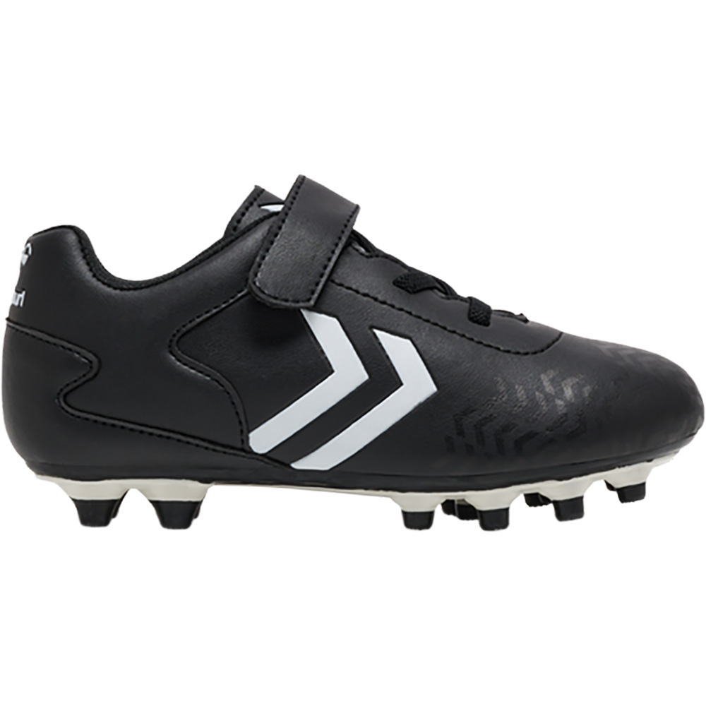 Fußballschuh für feste Böden. Ein weiches PU-Obermaterial mit elastischen Schnürsenkeln und Klettverschluss, weichem Mesh-Futter und gestanzter Innensohle. Prägungs- und Druckdetails auf dem Obermaterial. Inspiriert von der stolzen Geschichte der Fußballschuhe von hummel.