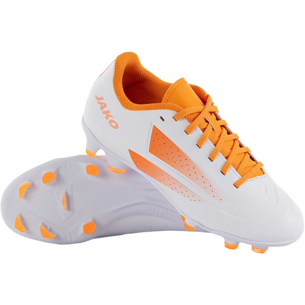 Die JAKO Opura Academy FG/AG Fußballschuhe für Kinder (Artikelnummer 5555-673) wurden entwickelt, um jungen Spielern ein solides Leistungsniveau auf dem Spielfeld zu bieten. Mit einem robusten synthetischen Obermaterial sorgt der Schuh für ein direktes Ballgefühl und gleichzeitig für langlebige Performance auch bei intensiven Trainingseinheiten. Die Nockensohle ist optimal für den Einsatz auf Natur- und Kunstrasen platziert und bietet zuverlässigen Grip und Stabilität bei schnellen Richtungswechseln und Antritten. Die klassische Zungen- und Schnürkonstruktion ermöglicht eine sichere Passform, die sich dem Fuß gut anpasst und hohen Tragekomfort bietet. Durch die Herstellung in Europa mit moderner Direct Injection-Technologie verbindet dieser Fußballschuh Strapazierfähigkeit, Komfort und Funktionalität für junge Talente auf dem Platz.