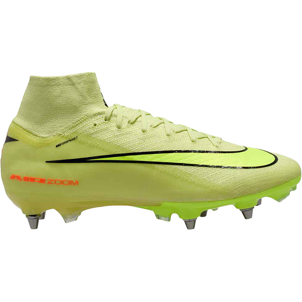 Der Nike Mercurial Superfly 10 Elite SG-PRO ist ein hochentwickelter Fußballschuh, der speziell für Spieler entwickelt wurde, die auf weichen Rasenplätzen (Soft Ground) maximale Geschwindigkeit und Präzision anstreben. Ausgestattet mit einer verbesserten 3/4-langen Air Zoom-Einheit bietet dieser Schuh ein reaktionsschnelles Laufgefühl, das schnelle Sprints und explosive Richtungswechsel unterstützt. Die Anti-Clog-Technologie in der Sohle verhindert das Anhaften von Schlamm, sodass stets optimaler Grip gewährleistet ist. Das leichte, strukturierte Obermaterial kombiniert Flyknit, Atomknit und Gripknit für hervorragenden Komfort, Unterstützung und Ballkontrolle. Mit seinem modernen Design und der funktionalen Ausstattung ist der Mercurial Superfly 10 Elite SG-PRO die ideale Wahl für ambitionierte Spieler, die ihre Performance auf dem Spielfeld maximieren möchten.