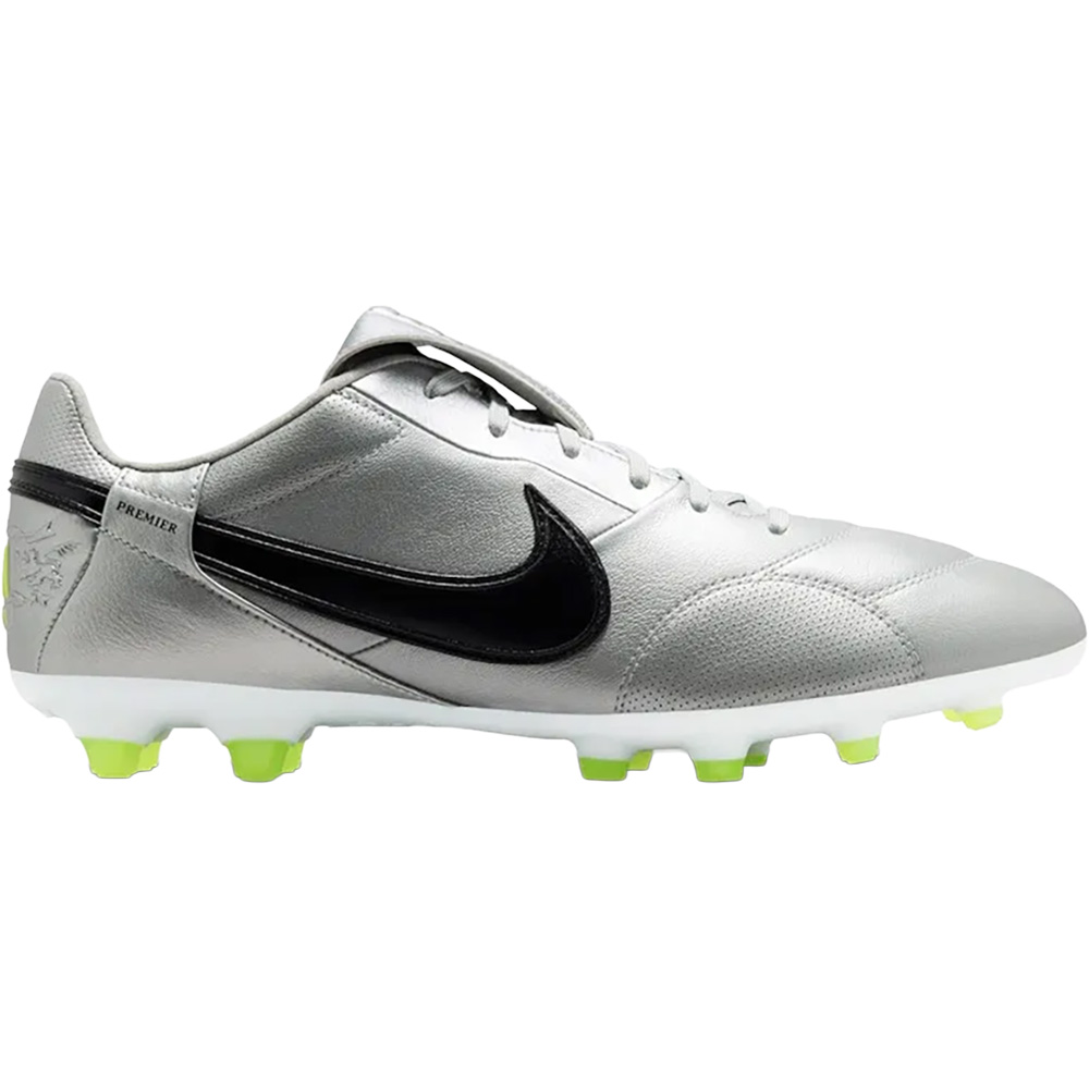 Erlebe das ultimative Zusammenspiel aus Eleganz, Performance und klassischem Fußballgefühl: Der Nike Premier III FG in Metallic Silver/Black-Volt bringt hochwertige Verarbeitung und unverfälschte Kontrolle auf den Platz. Mit seinem geschmeidigen, weichen Premium-Lederobermaterial bietet der Schuh einen unglaublich direkten Ballkontakt – ideal für präzises Dribbling, Passspiel und Schussgefühl auf festem Naturrasen (FG).