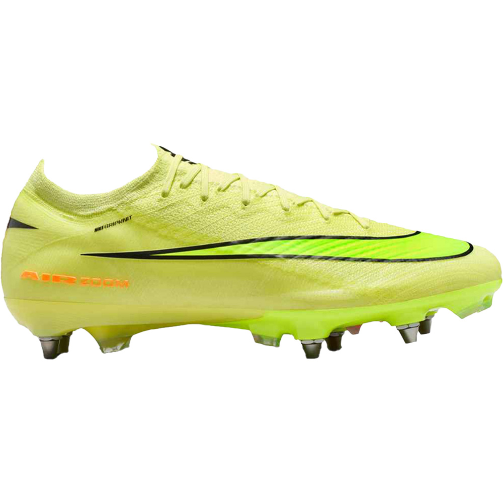 Der Nike Mercurial Vapor 16 Elite SG-PRO ist ein Hochleistungs-Fußballschuh, der speziell für Spieler entwickelt wurde, die auf weichen Rasenplätzen (Soft Ground) maximale Geschwindigkeit und Präzision anstreben. Ausgestattet mit einer verbesserten 3/4-langen Air Zoom-Einheit bietet dieser Schuh ein reaktionsschnelles Laufgefühl, das schnelle Sprints und explosive Richtungswechsel unterstützt. Die SG-Sohle mit längeren, konischen Stollen sorgt für optimalen Grip und Stabilität auf weichen, nassen Rasenflächen. Das leichte, strukturierte Obermaterial kombiniert Flyknit, Atomknit und Gripknit für hervorragenden Komfort, Unterstützung und Ballkontrolle. Mit seinem modernen Design und der funktionalen Ausstattung ist der Mercurial Vapor 16 Elite SG-PRO die ideale Wahl für ambitionierte Spieler, die ihre Performance auf dem Spielfeld maximieren möchten.