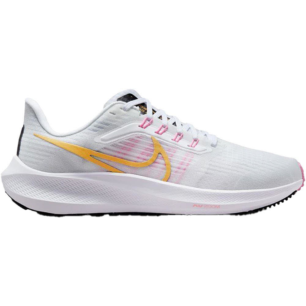 Der Nike Pegasus 39 bringt dich auf das nächste Level. Er ist oben leichter als der Pegasus 38 und eignet sich ideal für jede Jahreszeit. Er hat ein stützendes Tragegefühl und sorgt für guten Halt. Die Dämpfung unter dem Fuß und doppelte Zoom Air-Elemente (ein Element mehr als im Peg 38) verleihen dir bei jedem Schritt einen zusätzlichen Akzent. Dein vertrautes Arbeitspferd mit Flügeln ist zurück. Zeit zum Abheben.