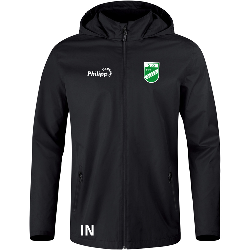 Das wasserabweisende Obermaterial der JAKO Allwetterjacke Premium hält dich bei Wind und Regen trocken. Die Regenjacke überzeugt durch geringe Feuchtigkeitsaufnahme und ist besonders pflegeleicht. Ein weiches Fleece in der Kragen-Innenseite kombiniert mit getapten Hauptnähten und Ärmelabschlüssen mit Klett sorgen für ein optimales Tragegefühl. Falls der Wind oder Regen etwas stärker wird, verfügt die Allwetterjacke auch über eine Kapuze.