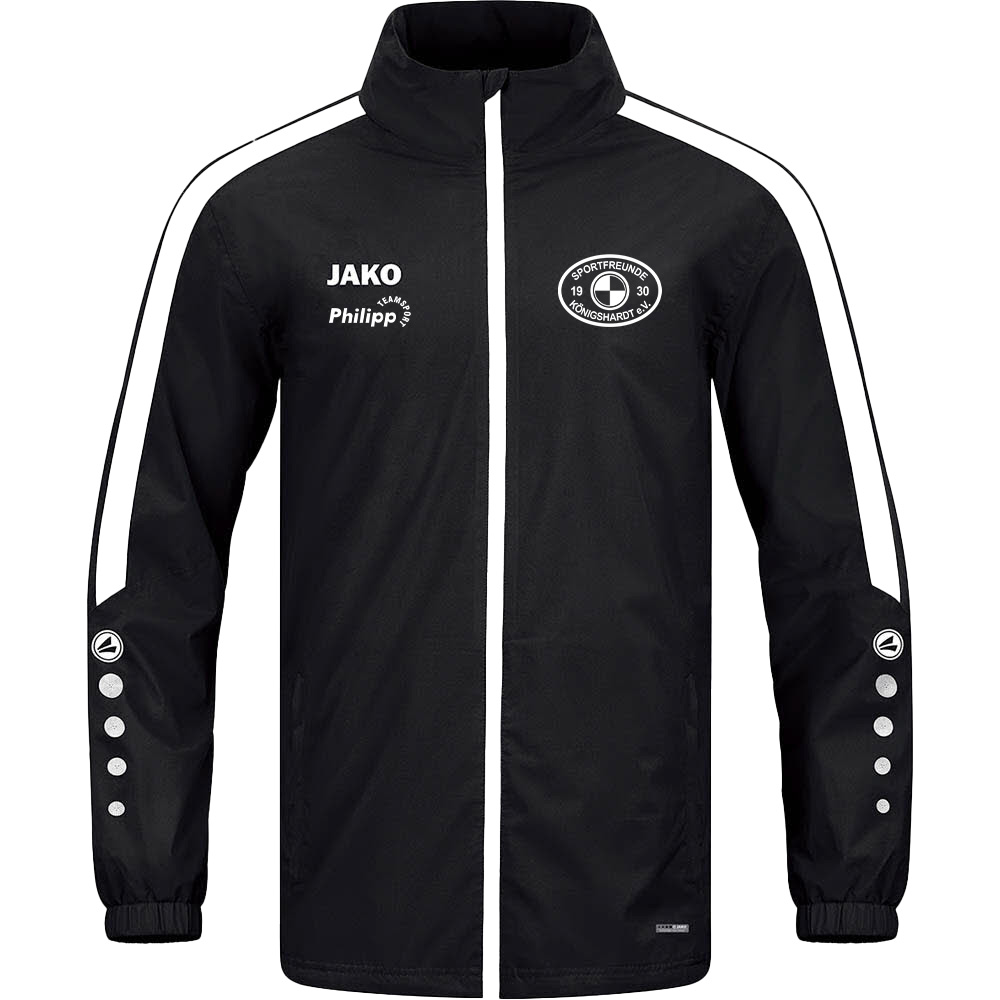 Für ein angenehmes Körperklima in der JAKO Allwetterjacke Power sorgen die wasserabweisenden Funktionsmaterialien, die gemeinsam mit getapten Hauptnähten vor unerwünschter Nässe schützen. Die Allwetterjacke Power besteht aus 100% Polyester und auch an stürmischen Tagen hält sie dank der Laminierung des Obermaterials stand.
