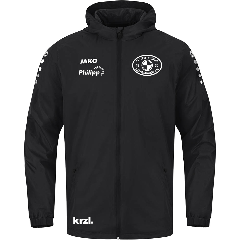 Ein hochfunktionelles, wasserabweisendes Obermaterial mit PU-Beschichtung hält dich bei jedem Wetter trocken. Die Kapuze, der verlängerte Rücken und die elastische Binding schützen dich vor Wind und Regen. In den integrierten Seitentaschen mit Reißverschluss kannst Du deine Wertsachen verstauen.