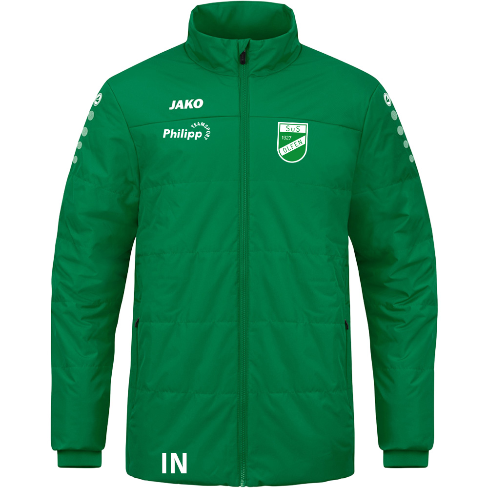 Wasserabweisendes Obermaterial (100 % Polyester) und wärmeisolierende Wattierung machen die JAKO Coachjacke Team bei kühlem Wetter zu deiner optimalen Ausstattung, wenn Du neben dem Spielfeld stehst. Integrierte Ripp-Bündchen in den Ärmeln und weiches Fleece auf der Innenseite sorgen für ein angenehmes Tragegefühl.