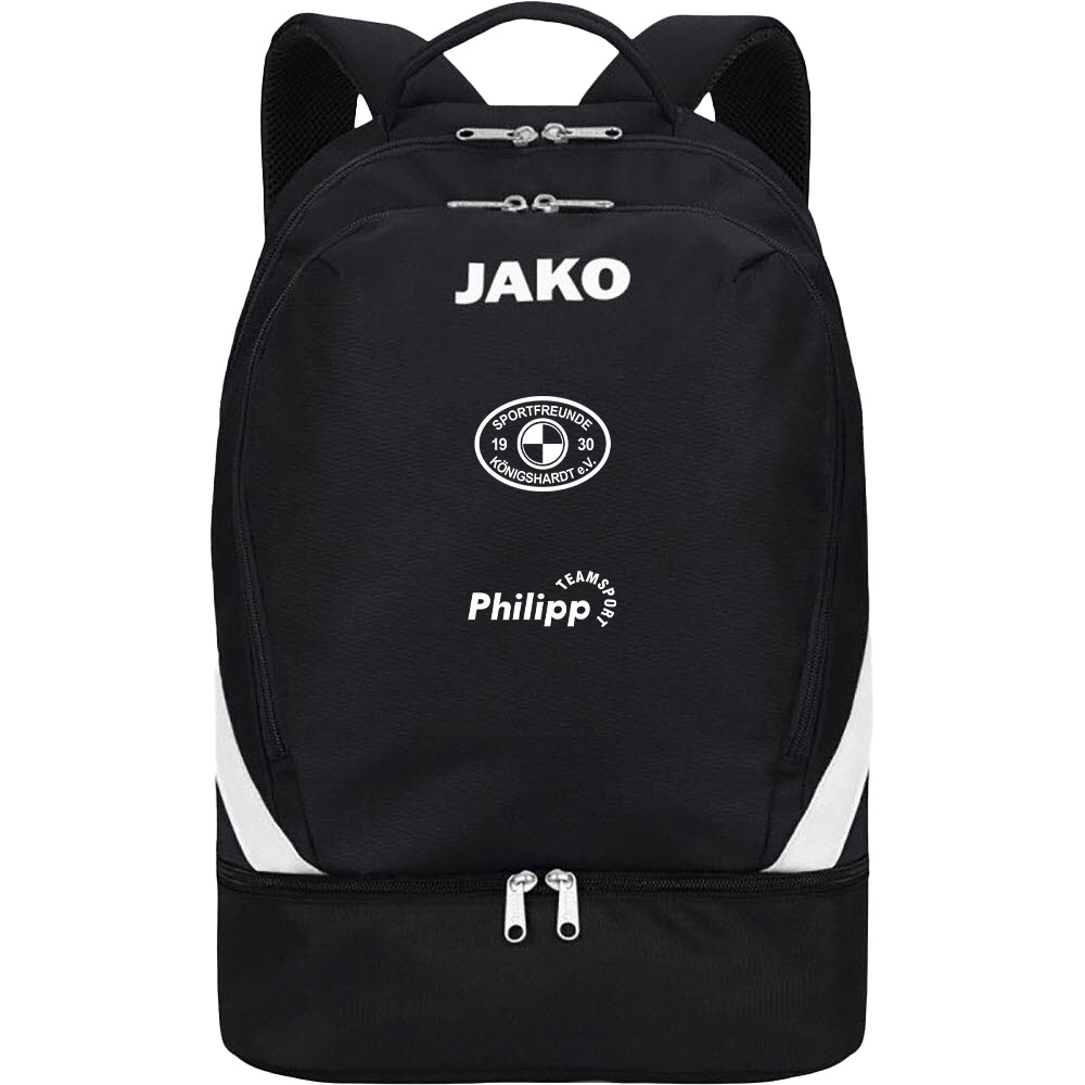 Der Jako Rucksack Iconic schwarz mit praktischem Bodenfach überzeugt mit seinem geräumigen Hauptfach und den umlaufenden 2-Wege-Reißverschluss. Der gepolsterte, abgesteppter Rücken sowie die weichen Tragegurte bieten einen tollen Tragekomfort