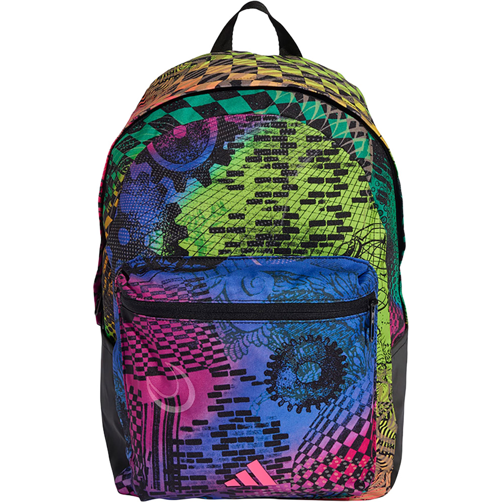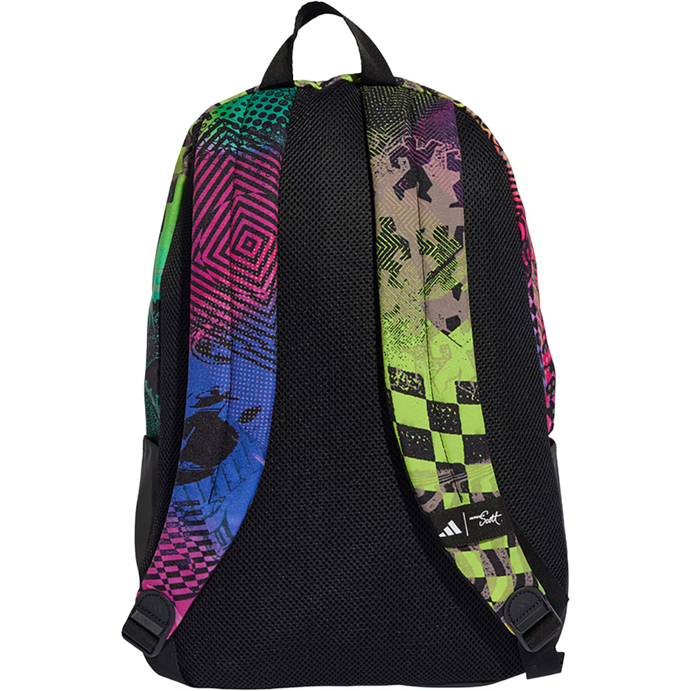 Dieser adidas Rucksack wurde gemeinsam mit Jeremy Scott entworfen und feiert die Freude am Tanzen und an der Clubkultur. Dank mehrerer Taschen innen und außen bleiben deine wichtigen Kleinigkeiten übersichtlich und griffbereit. Der bunte Print kombiniert leuchtende Farben mit den blinkenden Discolichtern eines Nachtclubs.