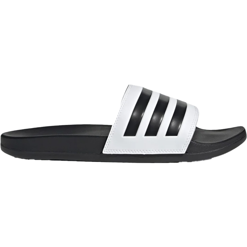 Egal ob du im Fitnessstudio hart trainierst oder gemütlich zu Hause entspannst, die Adilette von adidas bietet dir überall und jederzeit ultimativen Komfort. Diese leichten Slides lassen sich vielseitig stylen, sei es mit Socken und Shorts oder als perfektes Accessoire zu deiner Strandbekleidung. Die charakteristischen drei Streifen verleihen dem Schuh einen sportlichen Look. Mit einer regulären Passform und einem praktischen Slip-On-Design sind sie besonders angenehm zu tragen. Dank des Synthetik-Riemens und des weichen Textilfutters erlebst du lang anhaltenden Komfort. Die innovative Cloudfoam Plus-Innensohle sorgt für zusätzliche Dämpfung und ein wohlgeformtes EVA-Fußbett bietet dir leichten und stützenden Halt bei jedem Schritt. Die robuste EVA-Außensohle rundet das Design ab und garantiert Strapazierfähigkeit auf jedem Untergrund.