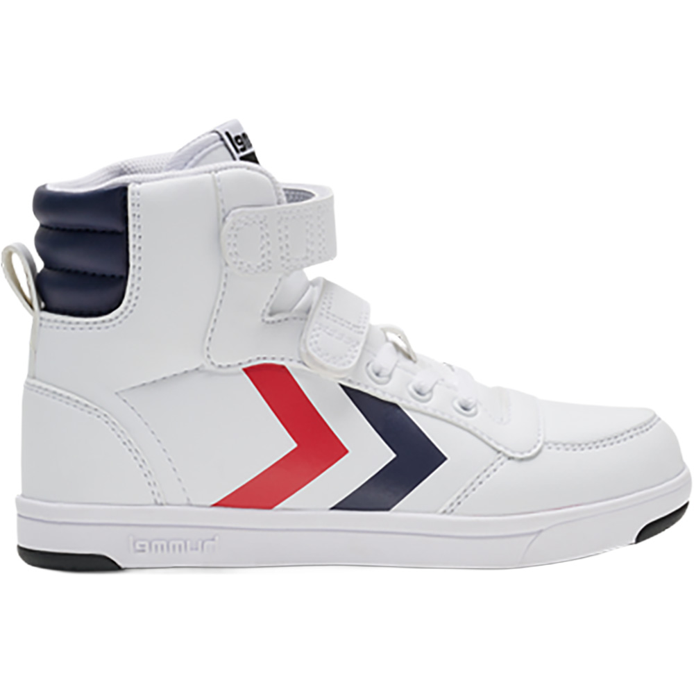 Der STADIL LIGHT QUICK HIGH JR ist superleicht und bequem. Der perfekte Schuh zum Rennen, Spielen und Springen. Das PU-Obermaterial mit Laufsohle aus Gummi und EVA dieser hummel® Sneaker bietet eine hervorragende Stoßdämpfung, während die Schnürsenkel und der kürzbare Klettverschluss die perfekte Passform garantieren. Die unverkennbaren, farblich abgesetzten Winkel sitzen auffällig an der Seite und sorgen für ein freches und schnittiges Design.